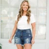 These boyfriend denim shorts feature an uneven fray hem for a unique and trendy look! Made to be more than just a basic pair of shorts, they add a touch of fashion-forward style to any outfit! Stay ahead of the fashion game with these Meant For More Shorts in a dark wash!