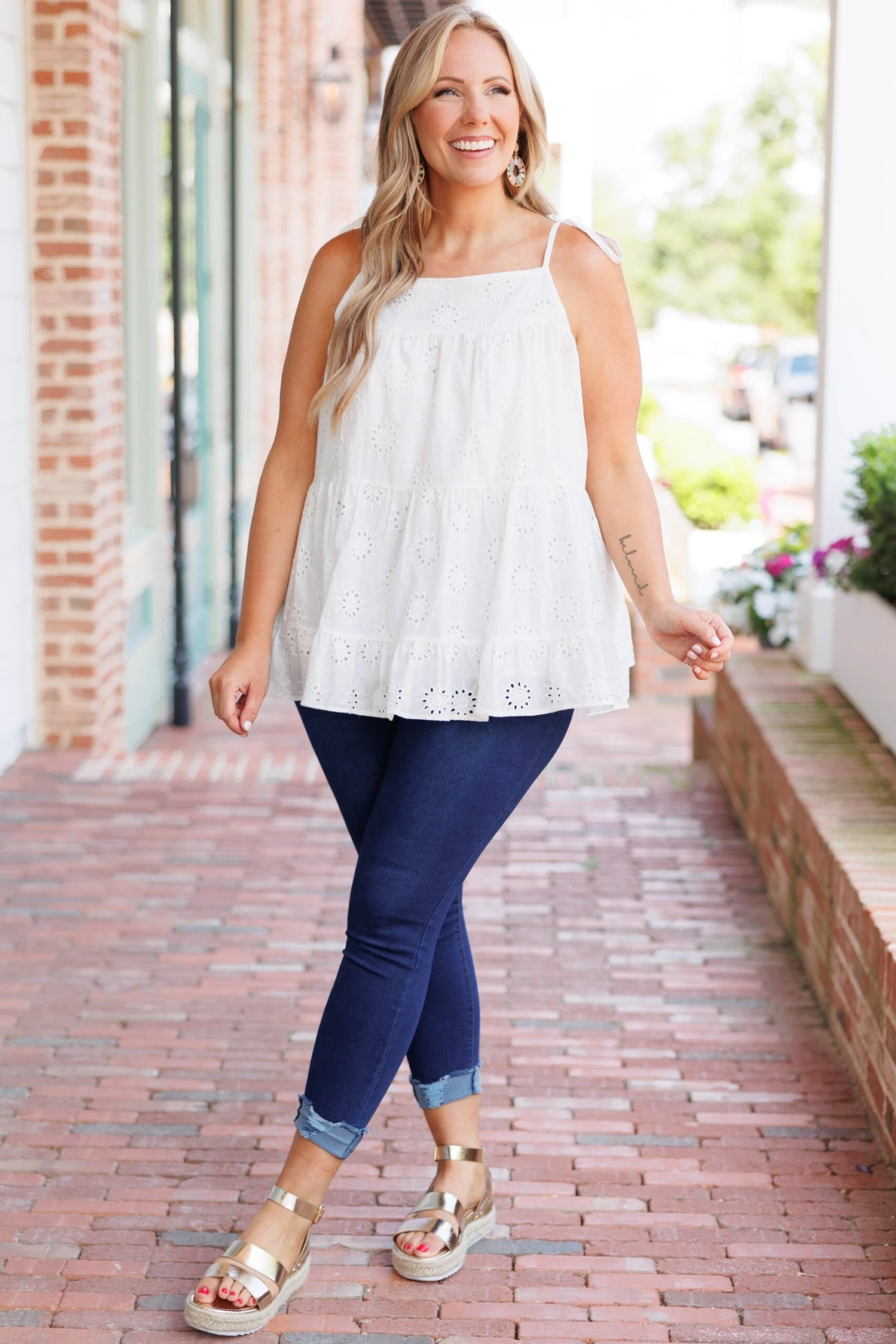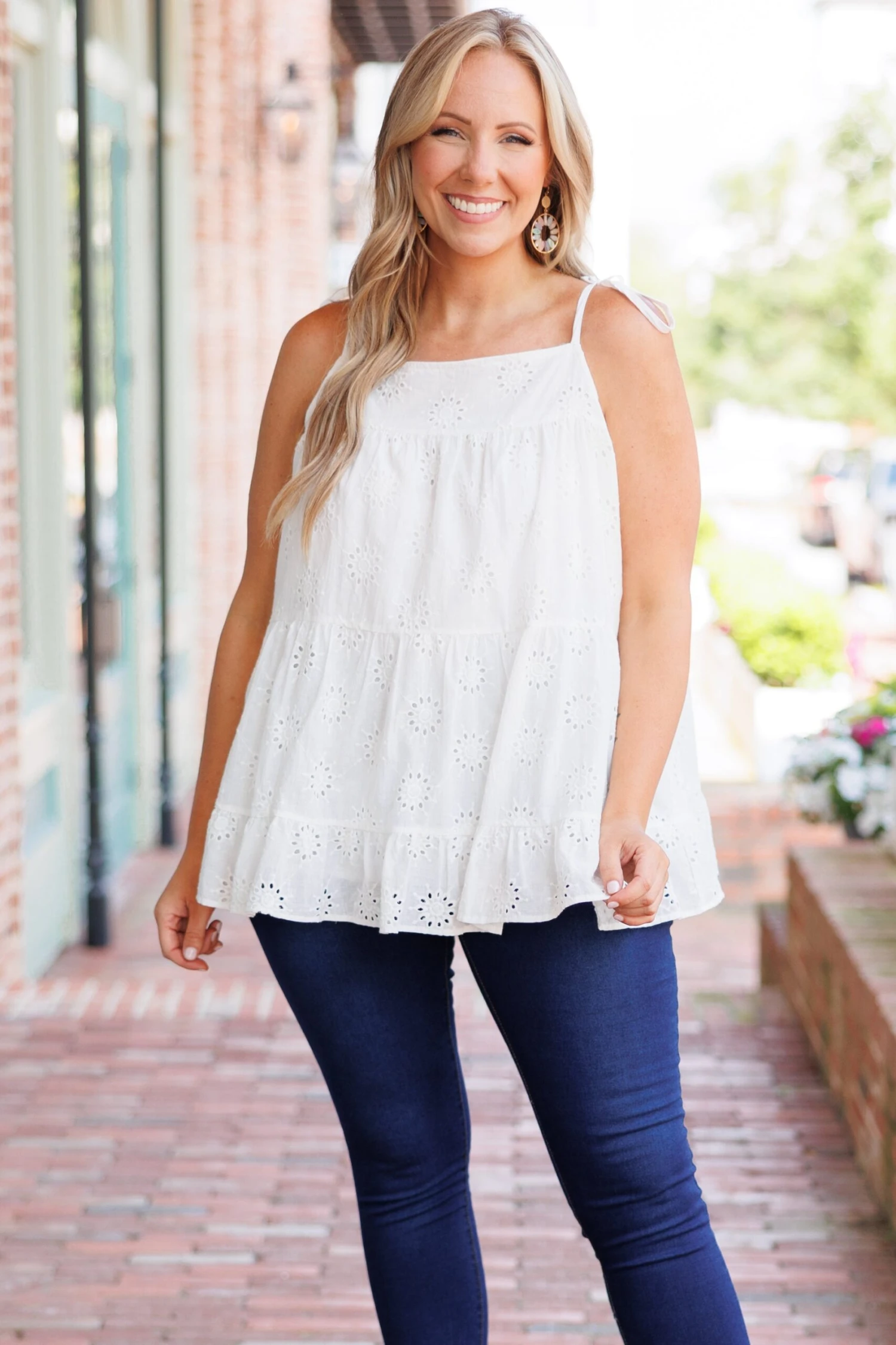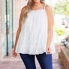 Enjoy the perfect mix of style and comfort with this FAB top! Crafted with spaghetti straps, a trendy lace design, and a flattering neutral white color, this top is suitable for all occasions! It’s perfect when paired with jeans or skirts for a look that’s sure to turn heads!