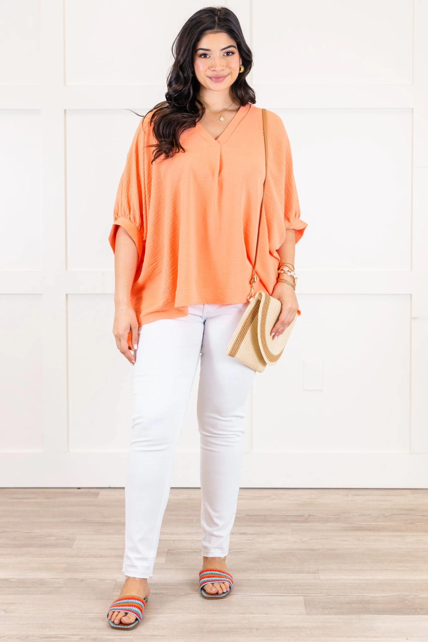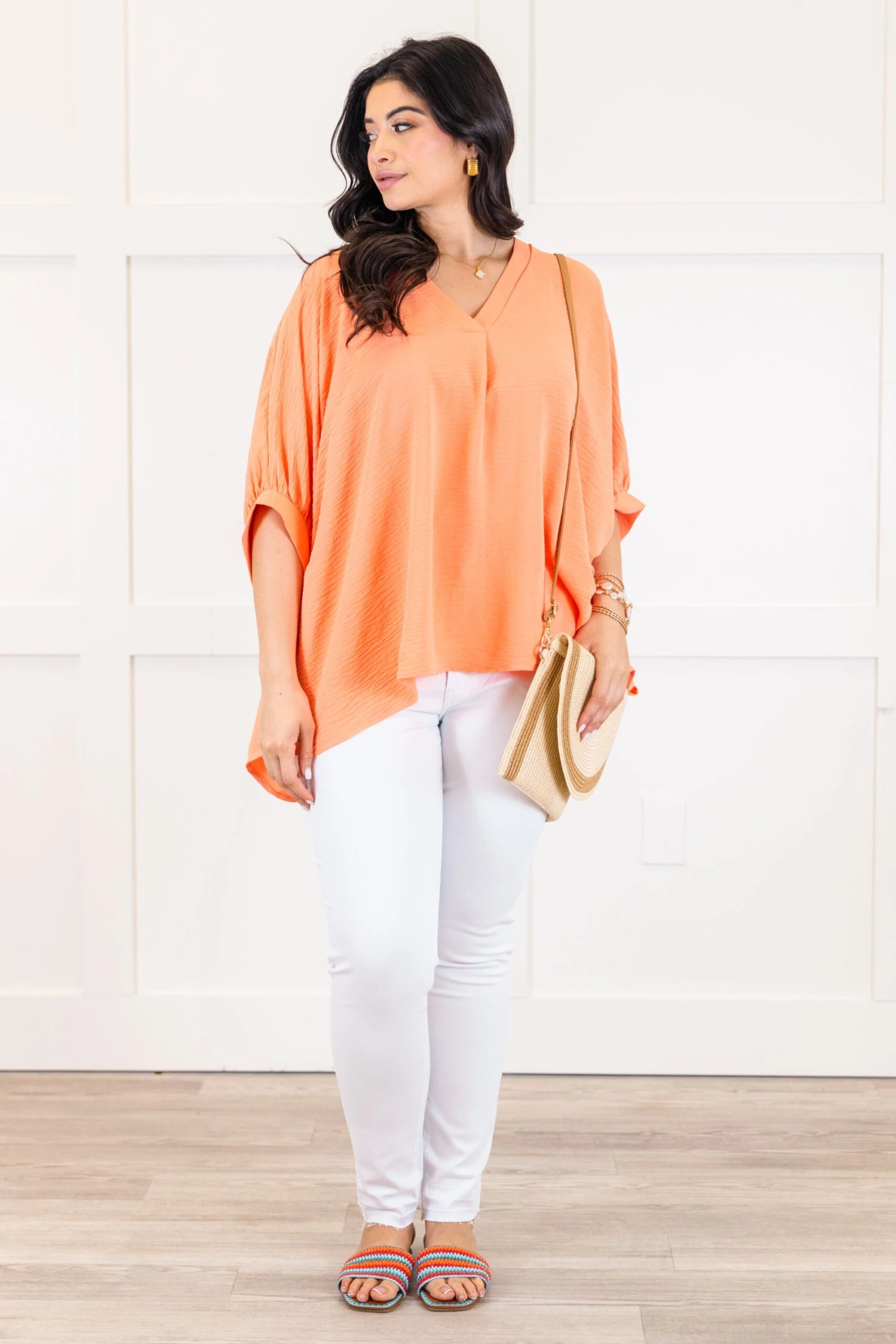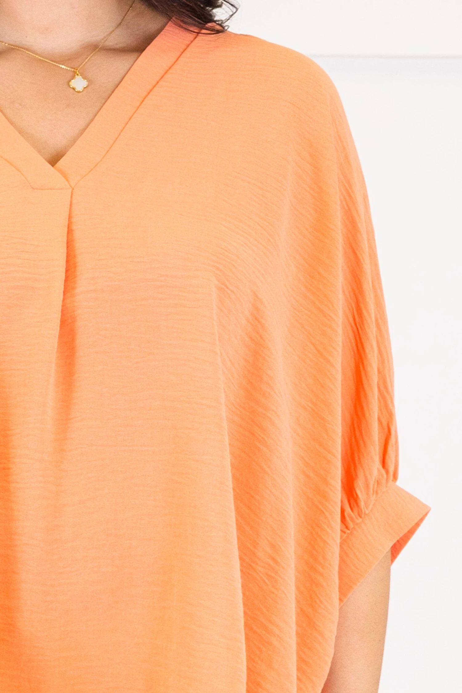 Stay effortlessly chic with this top in coral! Perfect for the office, this top features bat wing sleeves and a flattering v-neckline! Elevate your wardrobe with this go-to staple that promises timeless style and versatility!