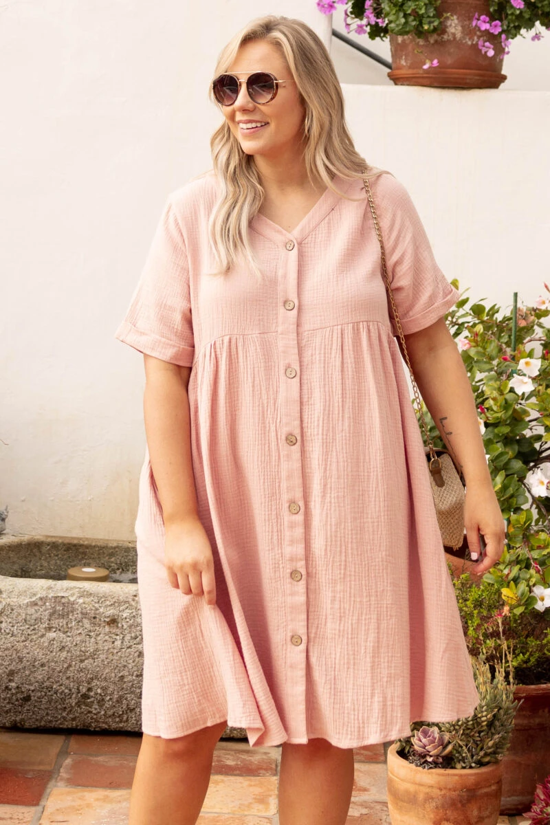 This dress is too sweet! The button down look is so trendy and the color is absolutely adorable! The length is perfect for an easy dressed up look for date night or for a day at work! This babe is so comfy with it’s relaxed babydoll fit you will not think twice about wearing it all day! Pair this with some cute accessories and wedges for a look that will impress!