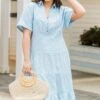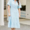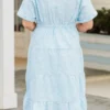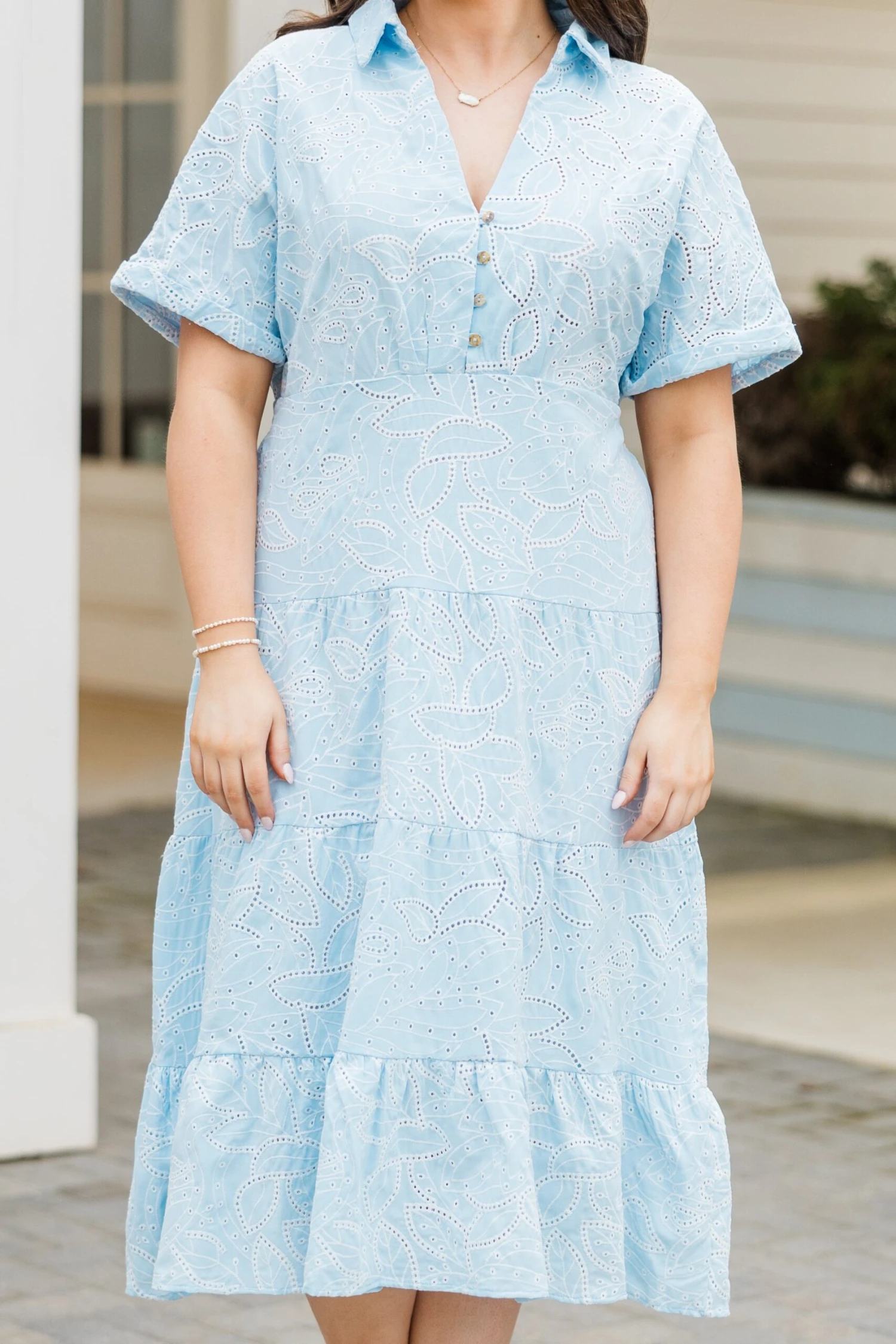 Meet us at the check out with this beauty! This vintage-inspired dress features an intricate eyelet design in a pretty blue color! The perfect midi length adds a touch of elegance to the overall look! Step out in style and turn heads with this charming dress!