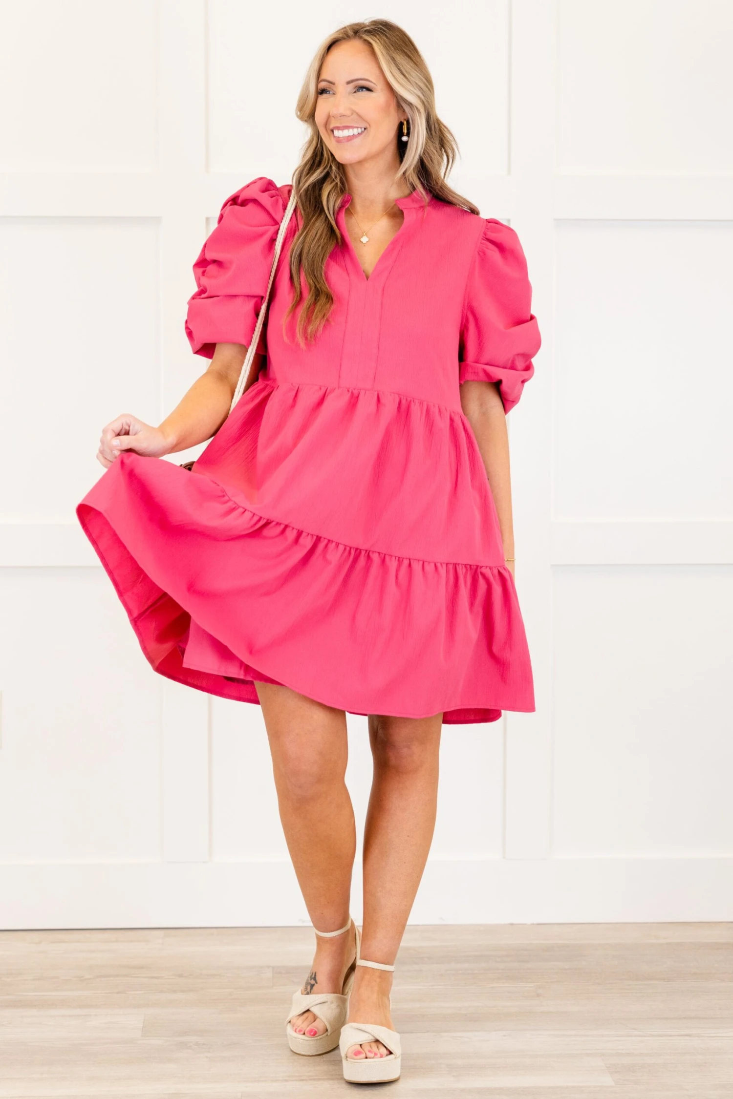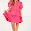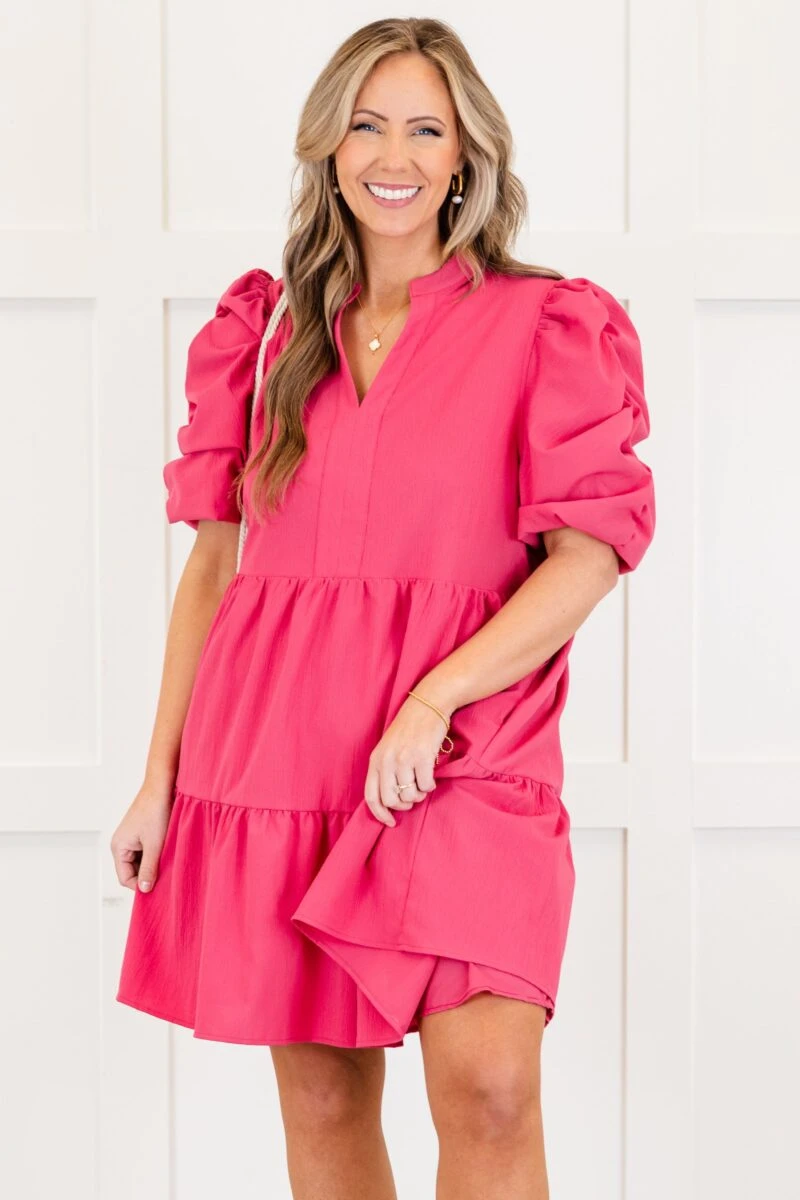 Meet us at the checkout with this gorgeous dress! It features functional pockets and puff sleeves, perfect for a playful yet functional look! The vibrant orchid color is sure to turn heads, while the flirty length adds a touch of elegance to any occasion!