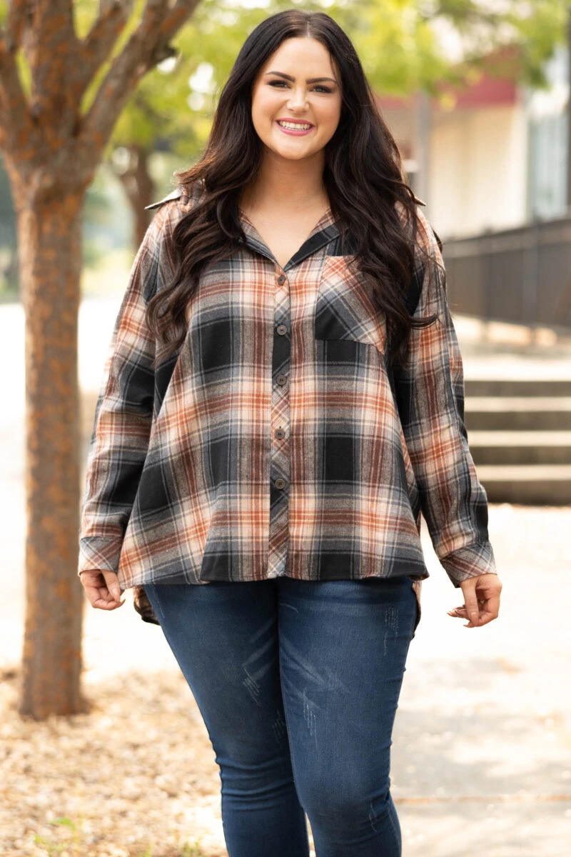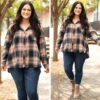 Don’t miss out on this adorable top! This top has a classic, black color with a trendy plaid pattern that is just in time for the season! The cozy feel and functional buttons are so sweet! Style this top with some skinnies or leggings for a trendy casual look!