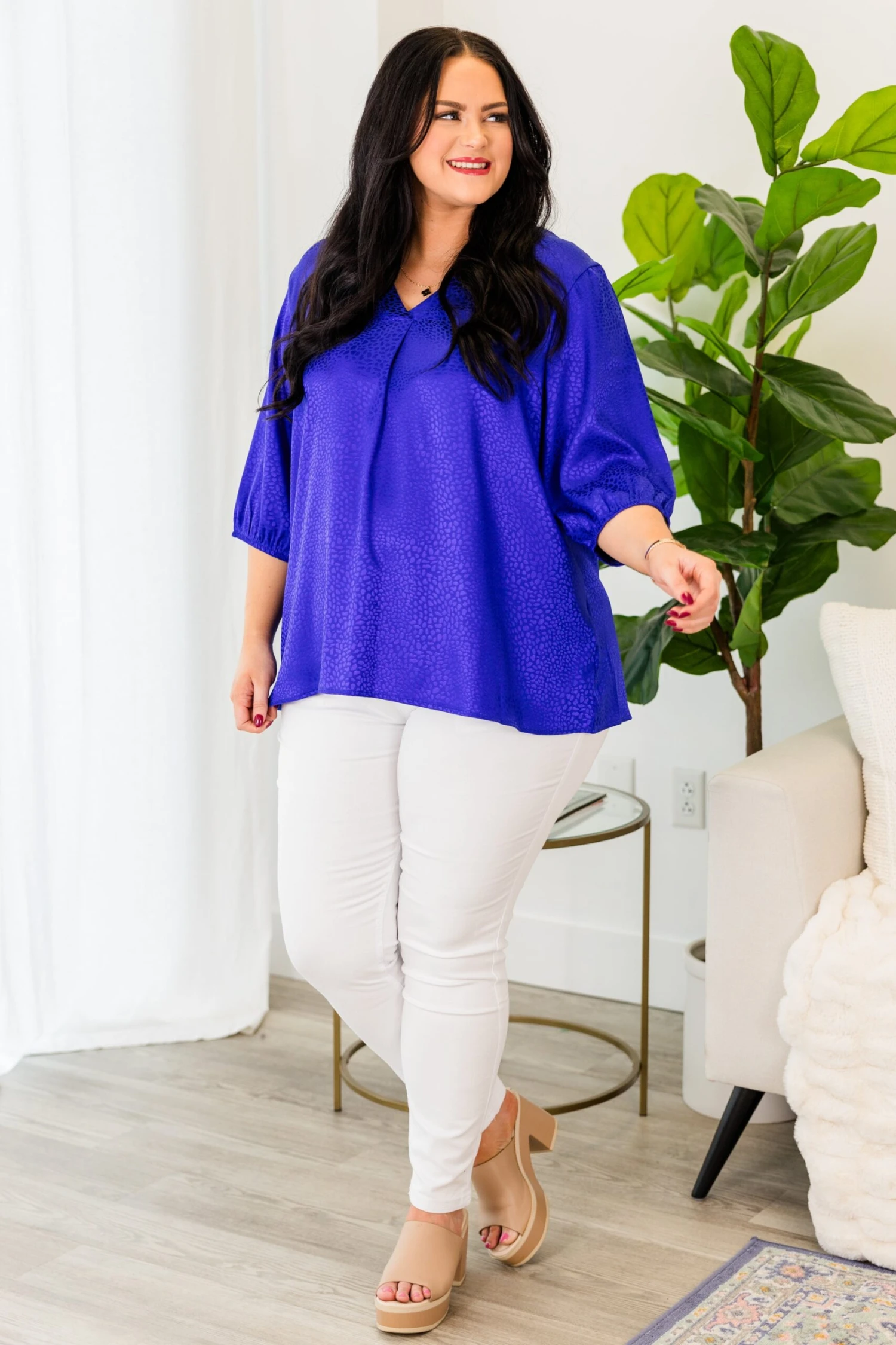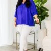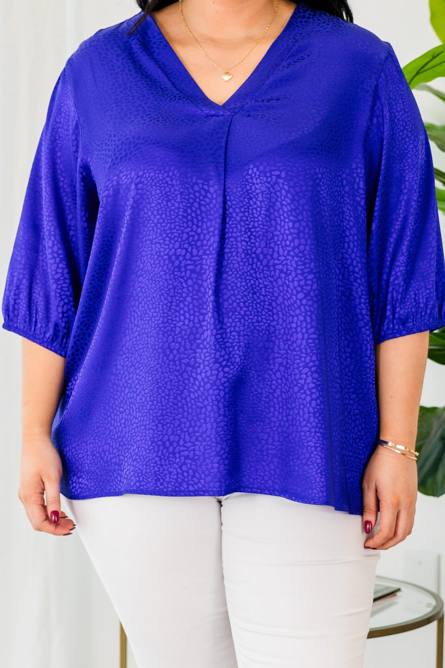 We simply adore this top! It features a trendy leopard pattern and a beautiful royal blue color, creating a stunning and versatile look! Its flowy fit offers comfort and a touch of elegance, making it perfect for any occasion, from date night to a day in the office!