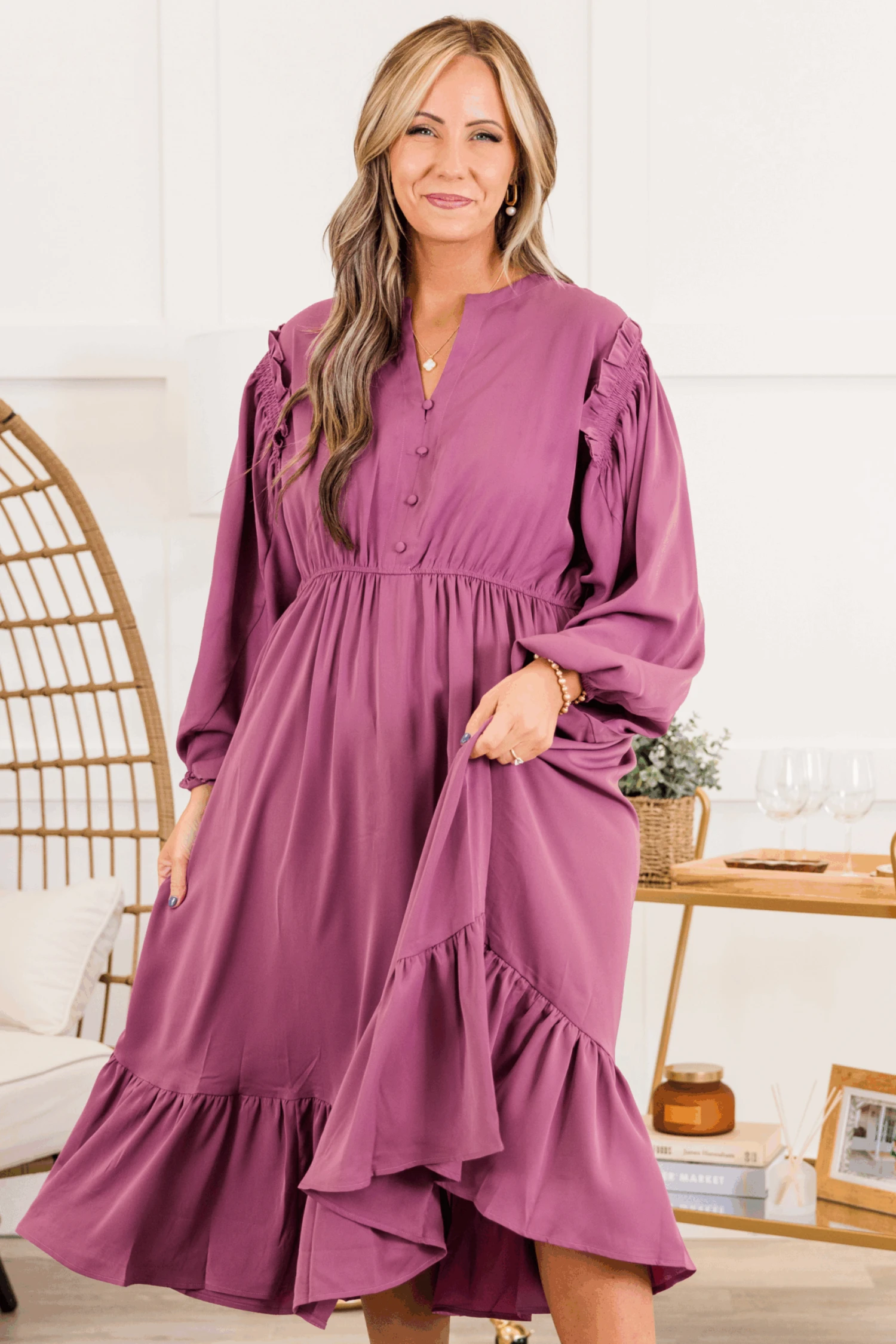 We know you’ll impress everyone around you in this chic dress! This dress has a solid eggplant color you can style for every occasion! It’s comfortable for all-day wear has a flowy fit to flatter your figure, and can be styled with your favorite accessories!Â