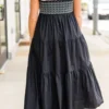 Indulge in the luxurious feel of summer with our Fun In Summer Dress! Featuring adjustable wide ribbon straps, a smocked bodice, and a charming ruffle detail, this black dress is your new go-to for any occasion! Get ready to make a stylish statement and bask in the warmth of the season!
