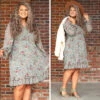 Take the midnight train going anywhere in this dress! This dress has a beautiful floral pattern with a chic sage color that can’t be beaten! The smocking neckline is too cute and the fit is sure to flatter every figure! Wear it with wedges or heels for your next event!Â
