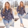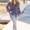 Take a stroll through the park in this beauty! The wrap design creates a flattering flowy fit, while the classic black color and floral pattern add a touch of elegance! Perfect for a romantic date night, this top is a must-have for your wardrobe!