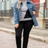 Our wish is that you add this jacket to your wardrobe! This jacket has a beautiful blue color with a figure flattering design that is perfect for the season! You can layer this jacket over a cute top and skinnies or a flirty dress and heels for an effortlessly chic look!