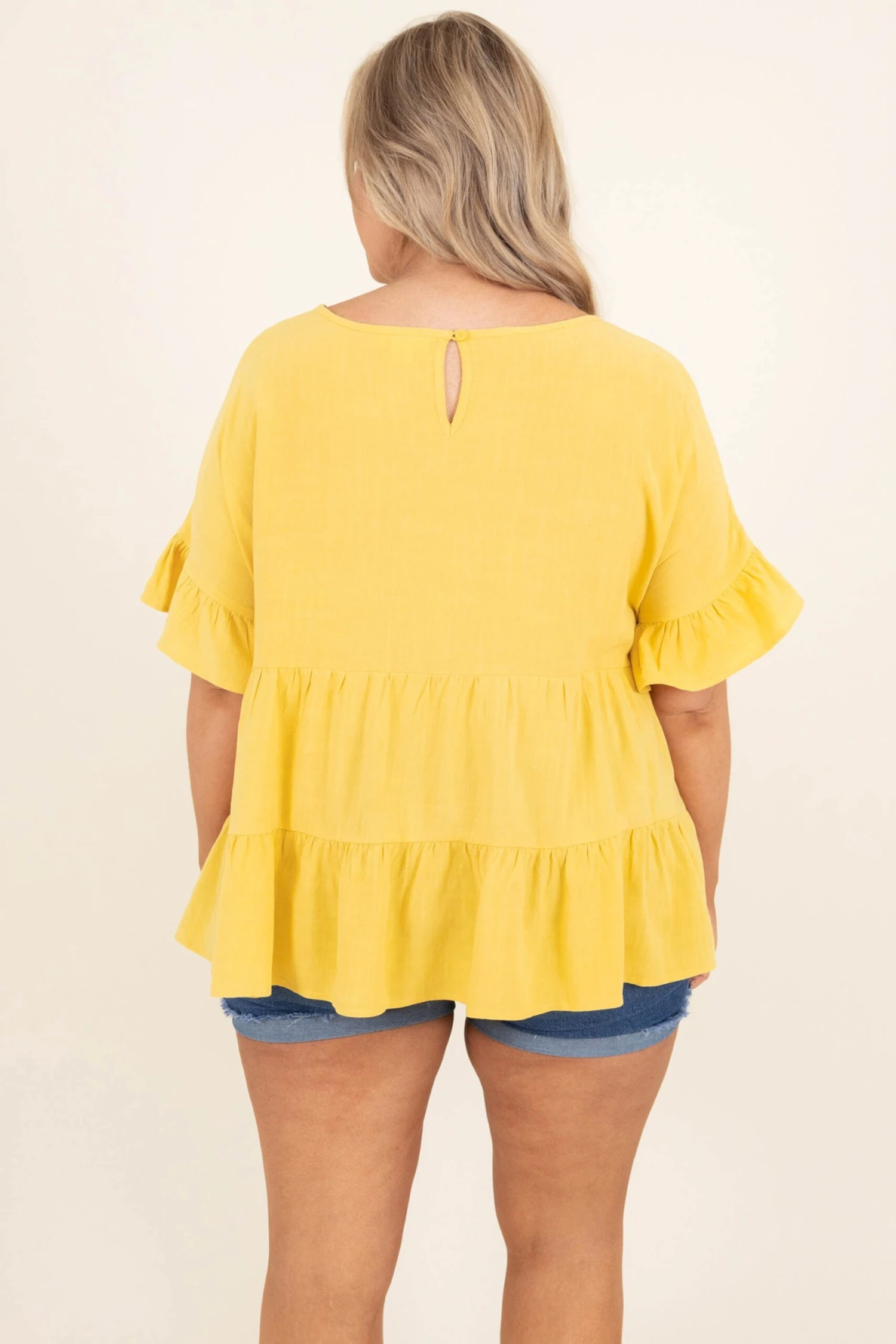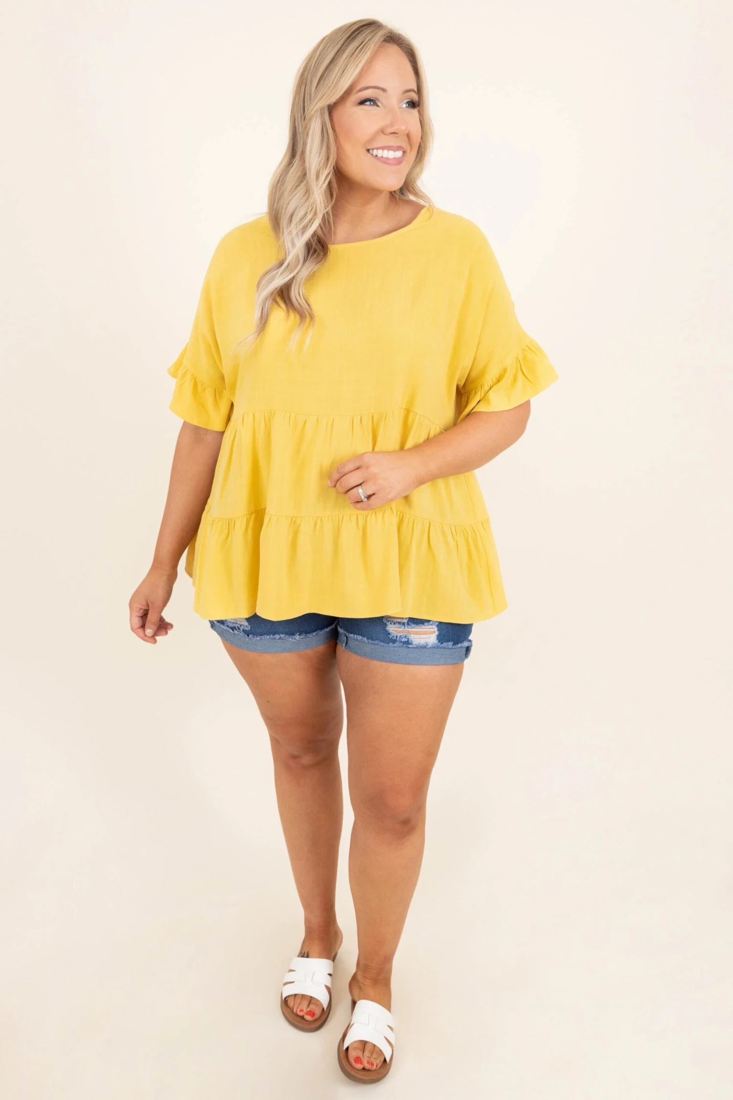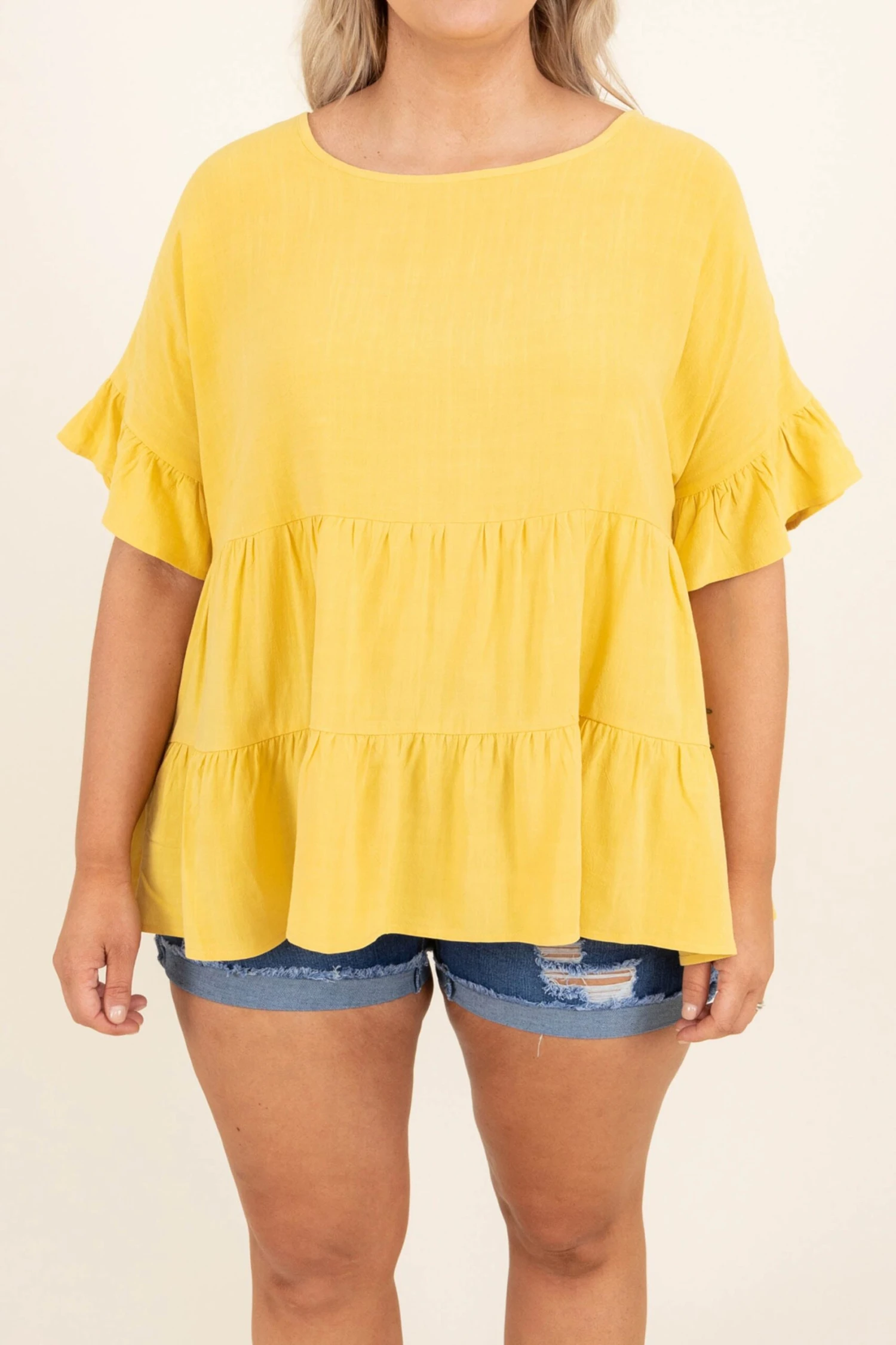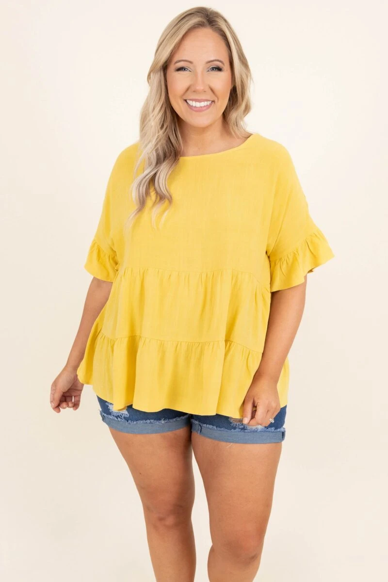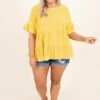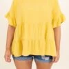This top is perfect for those warm summer nights! The yellow color is bright and cheerful and the babydoll look is our favorite! This is perfect with shorts or white skinnies for a look will give everyone envy!