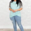 If your mind is anything like ours, then you’re thinking about how much you love this top! This top has a trendy mix of patterns with colors that are perfect for the season! It’s comfortable for all day wear, has a figure-flattering fit, and features the cutest twisted hemline!Â