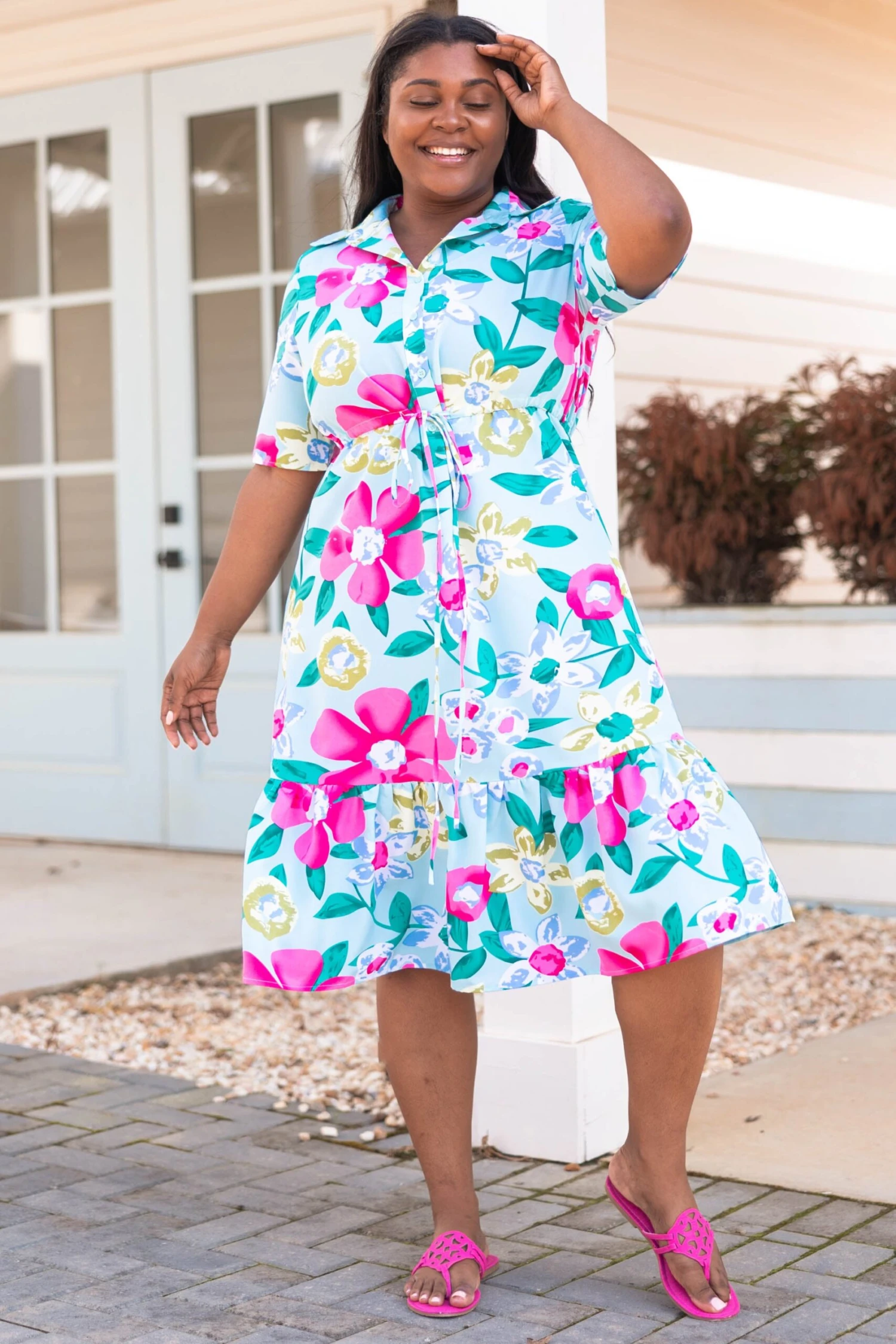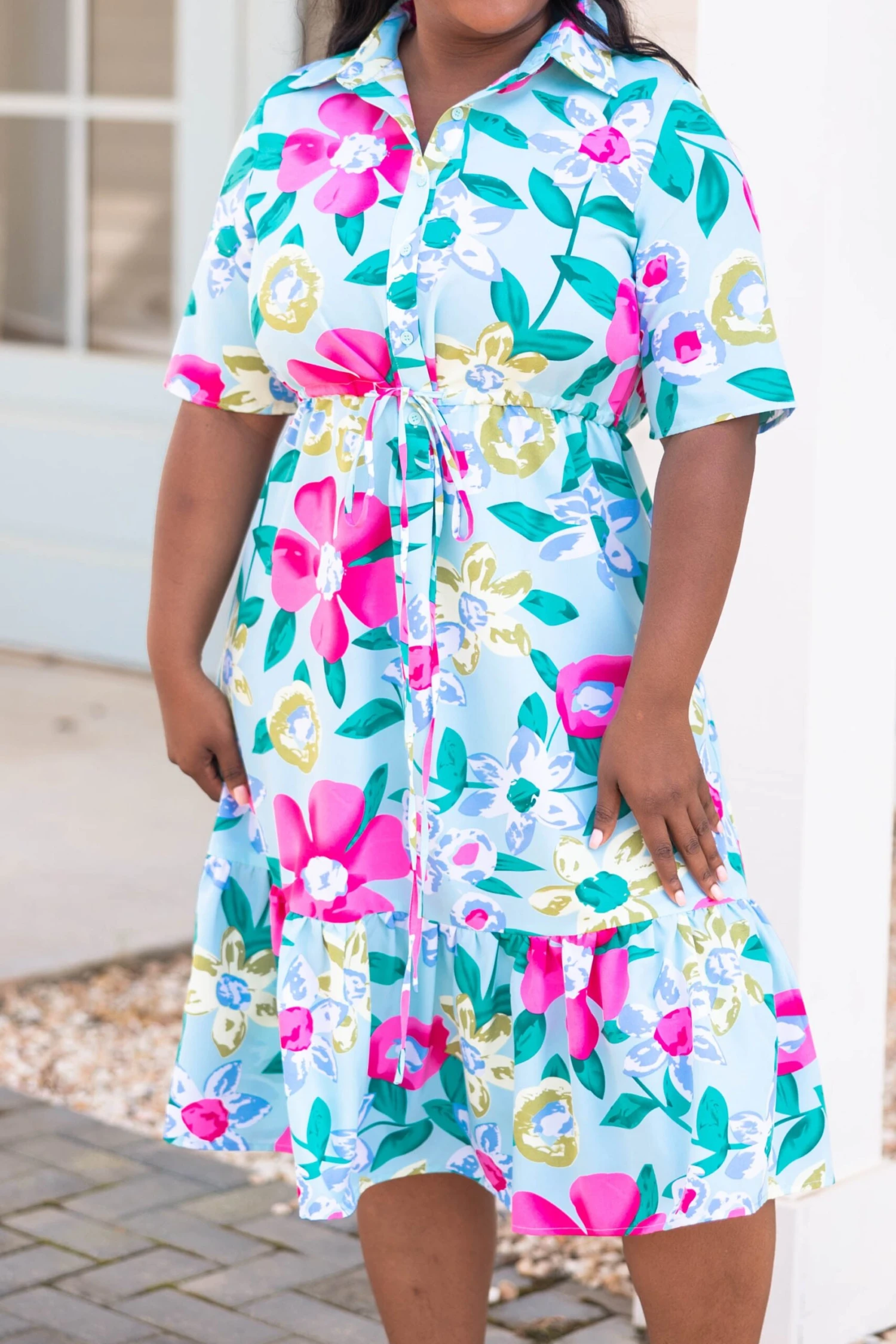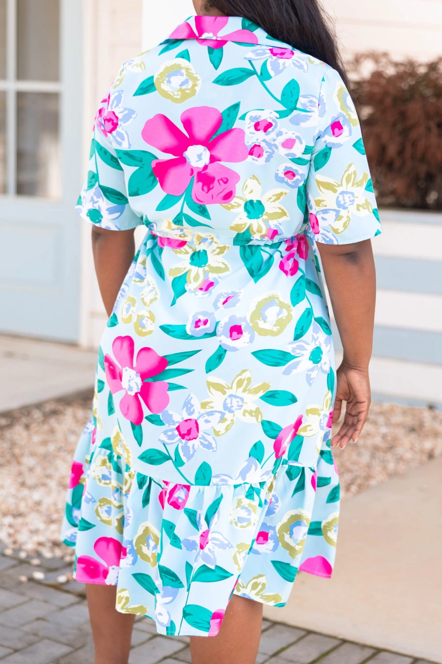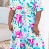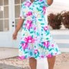 This beauty is crafted from a light and breathable fabric in a vibrant shade of mint! This dress is designed with a ruffled hemline and a beautiful all-over floral pattern. Perfect for any special occasion, it’s sure to make a statement!