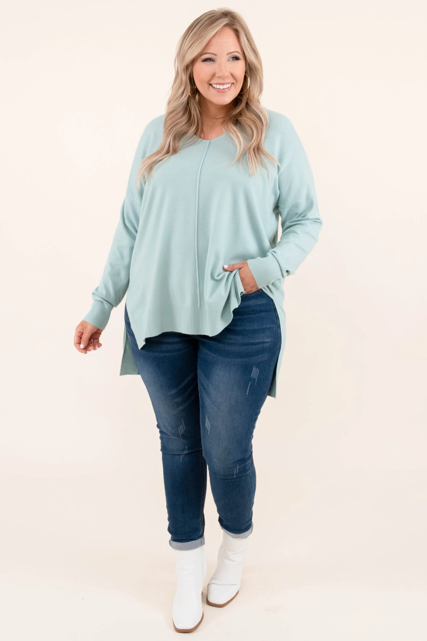 In this top, you’ll never miss last year’s wardrobe! This sweater has a chic dusty green color you can dress up or down and style with everything in your closet! It’s comfortable for all day wear, has a figure-flattering fit, and can be layered with your favorite outerwear! Simply, style this sweater with skinnies and booties for an effortlessly chic look!