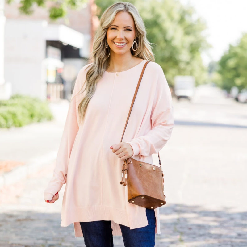 Embrace who you are right now in this gorgeous sweater! It has a chic dusty blush color you can dress up or down throughout the season! It is comfortable for all day wear and has as figure flattering fit! Simply style this sweater with skinnies or leggings for an unforgettable, chic look!