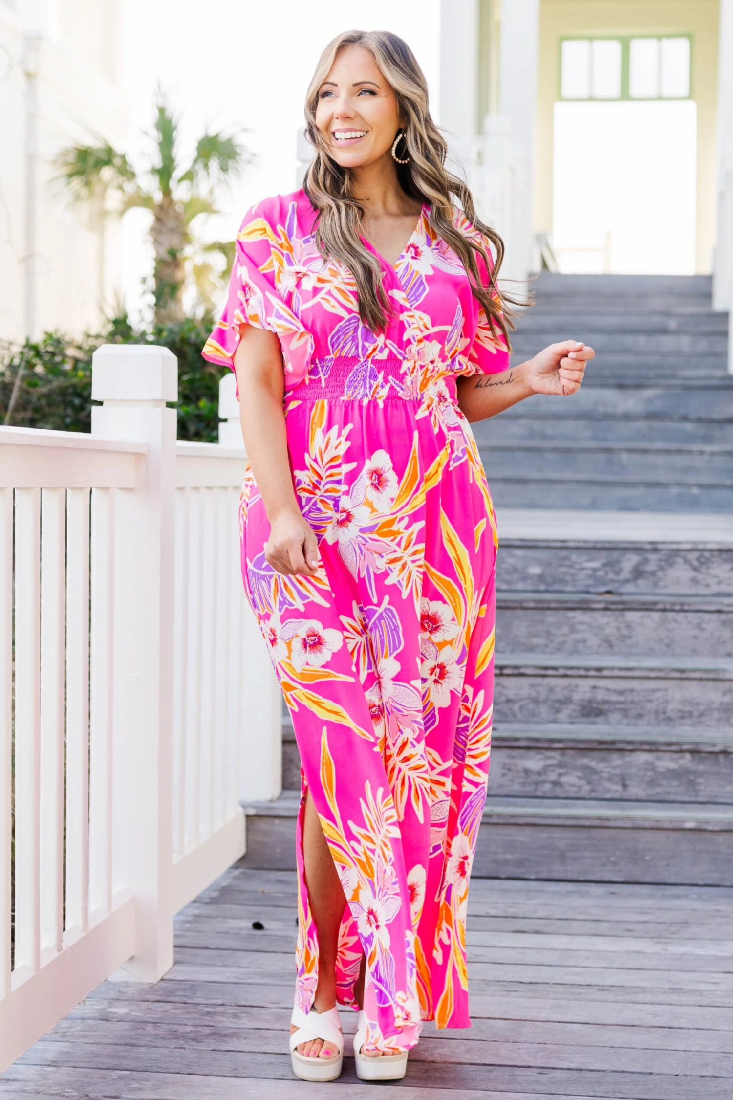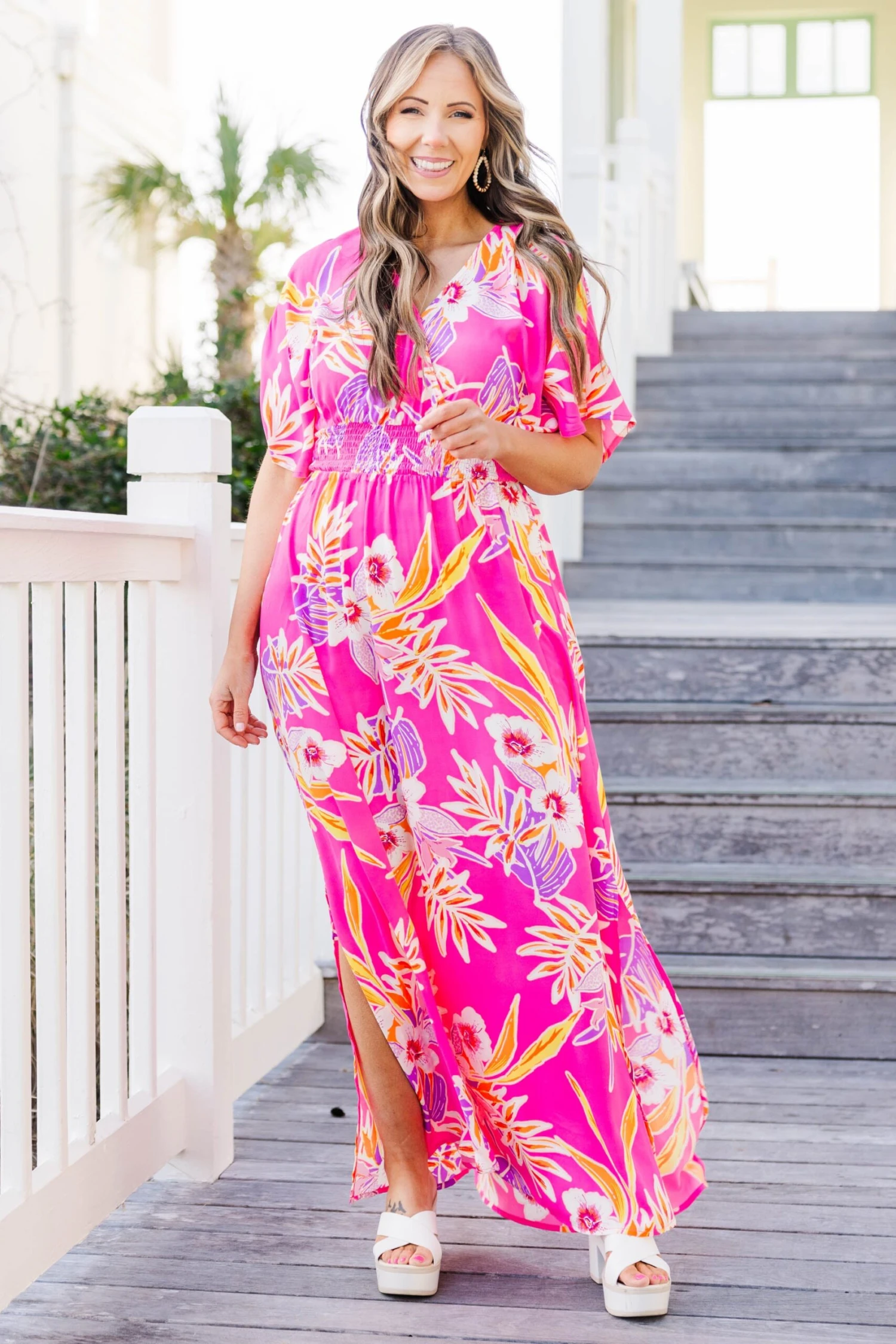 You’ll be the center of attention in this modern beauty! With a stylish crisscross neckline, and a smocked waistline for a flattering fit, this dress is perfect for any casual occasion! Adding a touch of sass with side slits, you’ll be sure to turn heads!