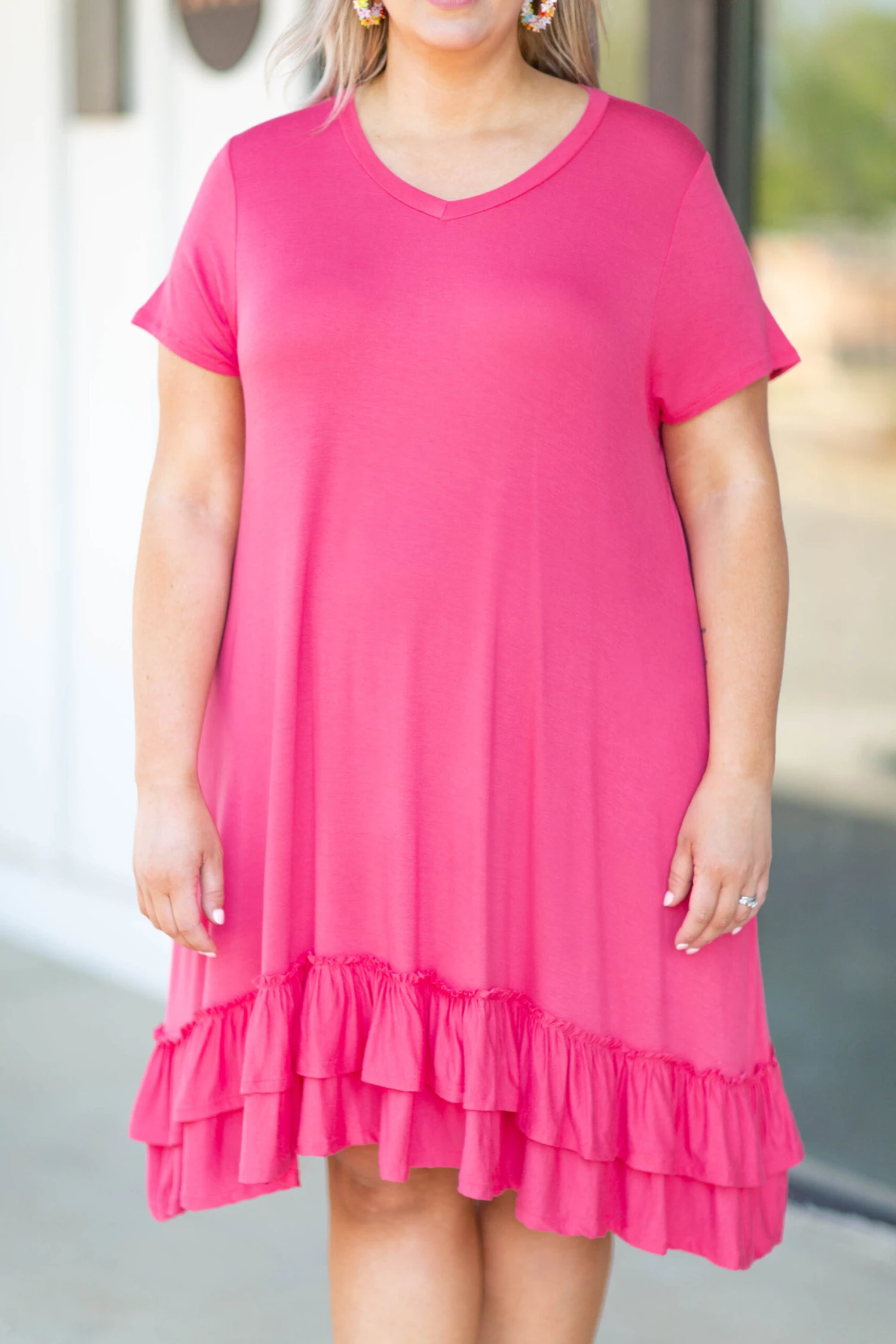This dress is a treasure! It has a bold pink color and a flattering fit dress that has super soft fabric and a cute ruffled hemline! It’s perfect for wearing to work, church, brunch…anywhere! Style it with wedges or heels for a chic look!Â