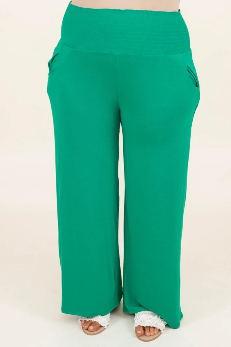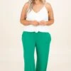 These pants are so bold and fun! The solid kelly green color will turn everyone’s heads and the soft material will have you in comfort all day long! These have a high smocked waist to keep you secure and the wide leg style is so in right now! Style these with basic white tank and some white sandals for a super chic look!