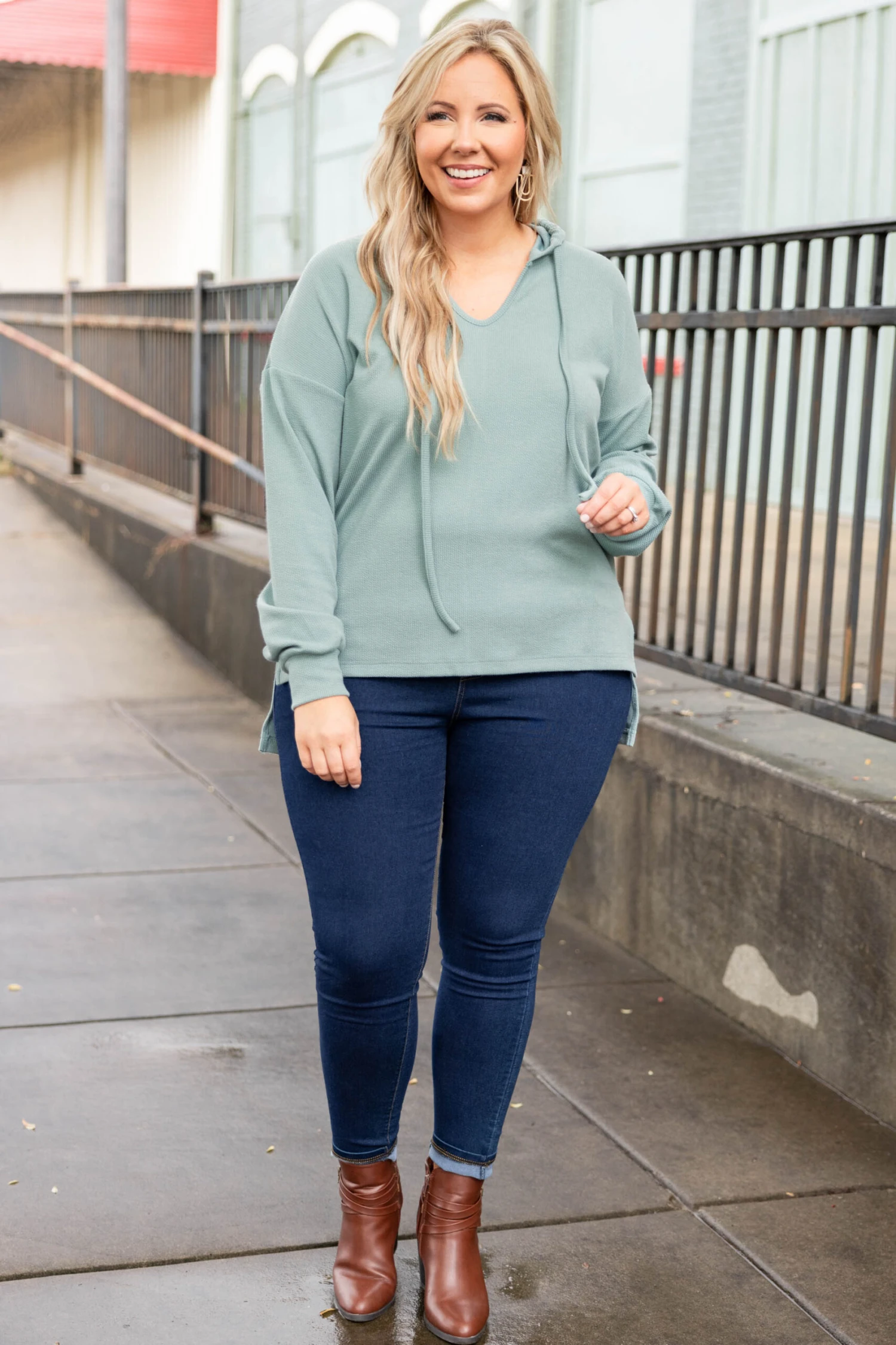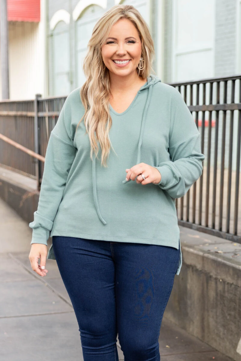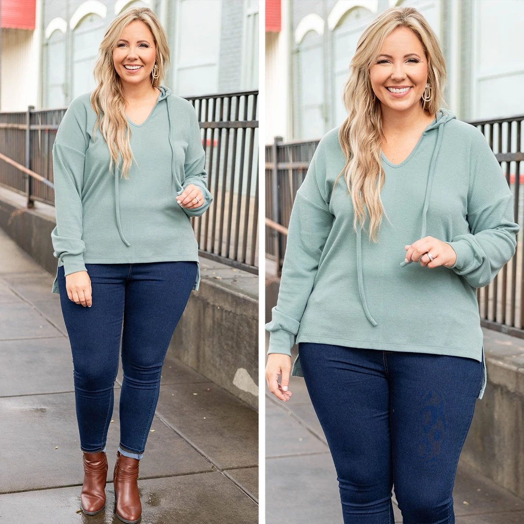 You’ll definitely remember every moment wearing this beautiful top! This lightweight hoodie has a lovely green color and figure flattering fit perfect for the season! Simply style this top with some skinnies or leggings for a cute, comfy look!