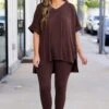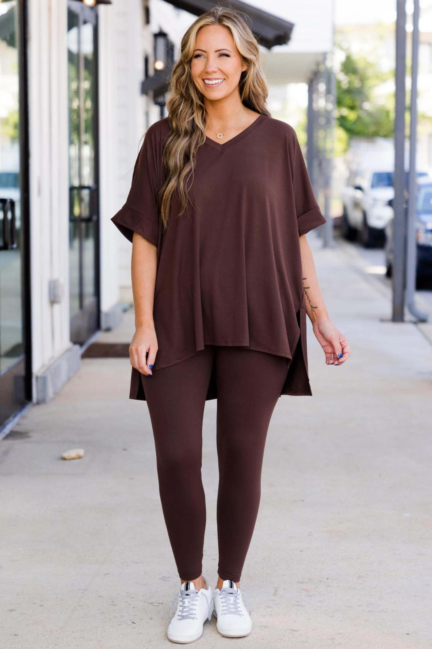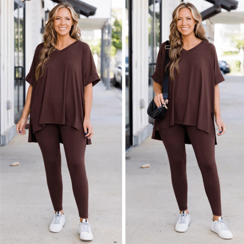 This gorgeous set is definitely a moment worth having! The mahogany color is just what you need for the season and the comfy fit is perfect for all day wear! The stretchy, figure flattering fit of the top and bottom make this set a must-have! Pair this set with some cute accessories and sandals or sneakers for an everyday, chic look!