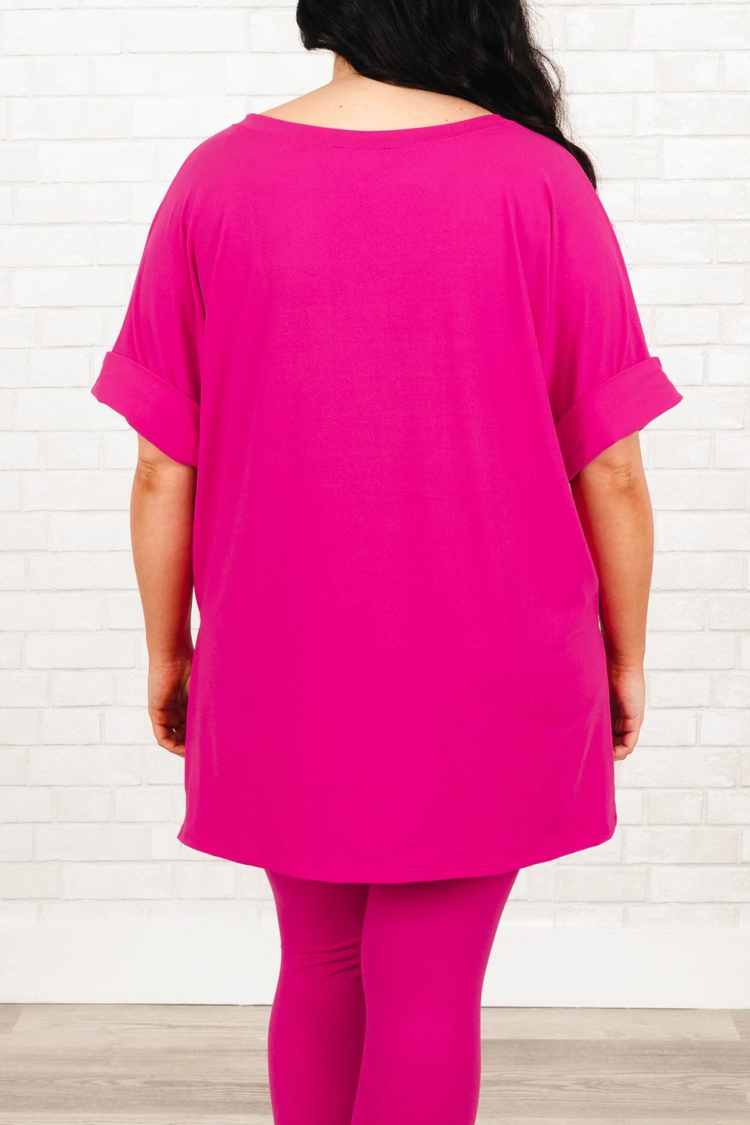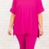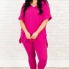 This gorgeous set is definitely a moment worth having! The bold neon hot pink color is just what you need for the season and the comfy fit is perfect for all day wear! The stretchy, figure flattering fit of the top and bottom make this set a must-have! Pair this set with some cute accessories and sandals or sneakers for an everyday, chic look!