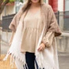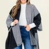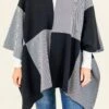 Introducing the Moonlit Mirage Duster in elegant black! This versatile piece doubles as a stylish striped blanket poncho and dynamic color block design! Stay cozy and fashionable at the same time with this must-have wardrobe essential!