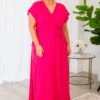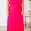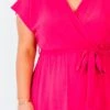 Experience more good days while wearing this beautiful dress! It features a bold hot pink color that is perfect for the season! This dress features a crisscross neckline and convenient pockets, making it perfect for any occasion! Say hello to more smiles with this fashionable and functional dress!