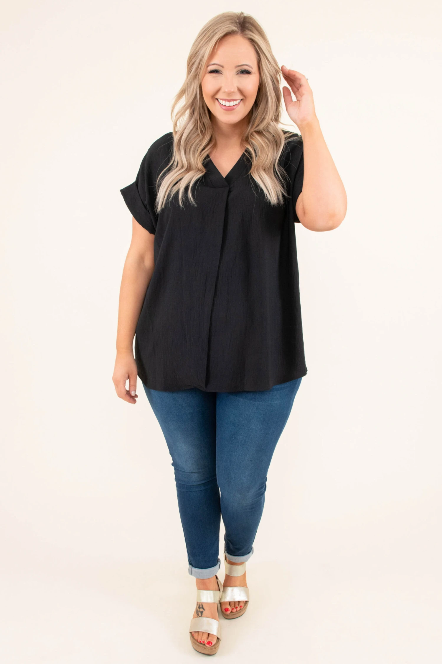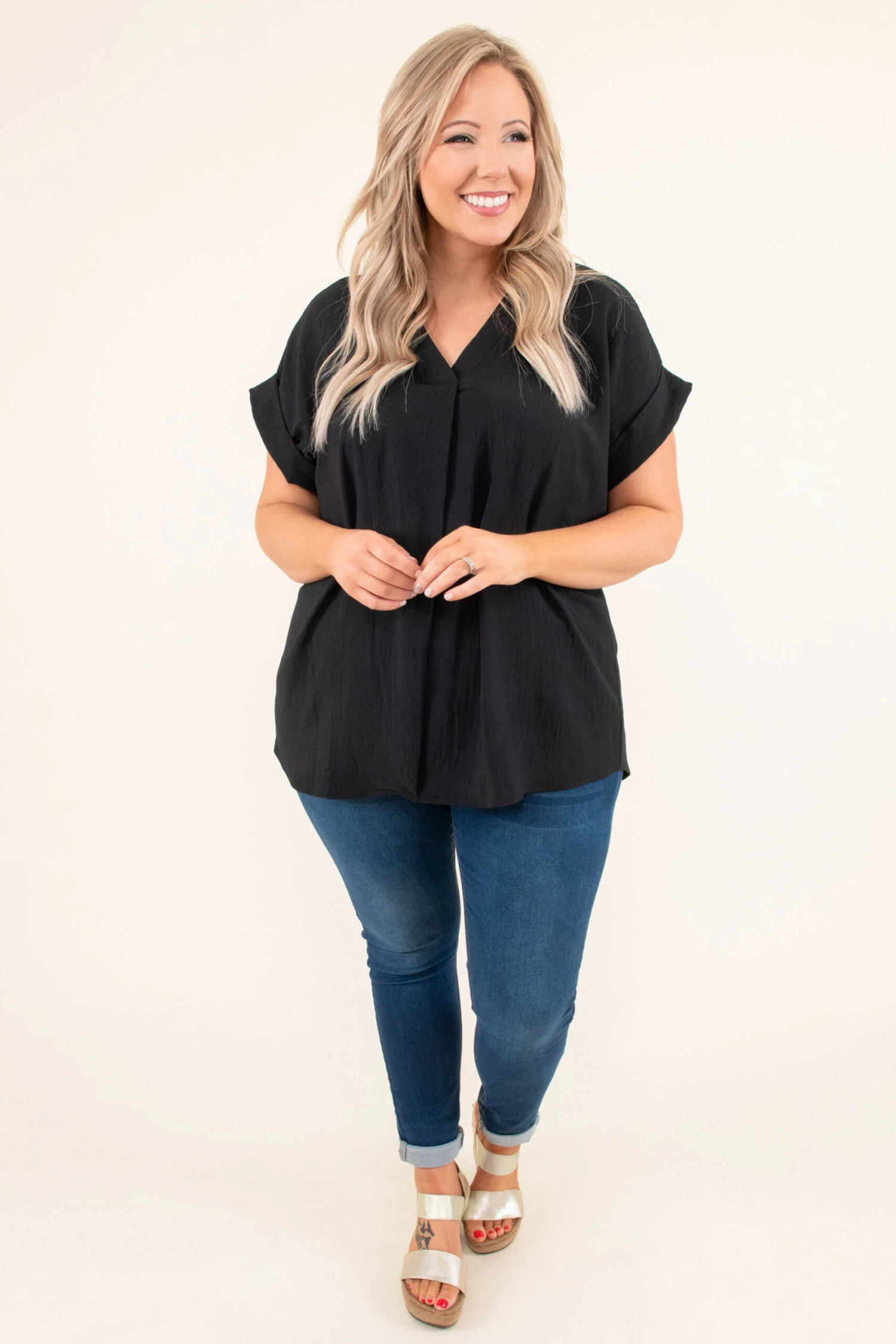 This top is the PERFECT staple piece to add to your wardrobe this season! The black color of this top means it is easily styled with any outfit! The linen feel of the fabric gives it an elevated feel that is sure to have you looking so amazing! Pair this cutie with skinnies, wedges, and any cardigan to look effortlessly chic!