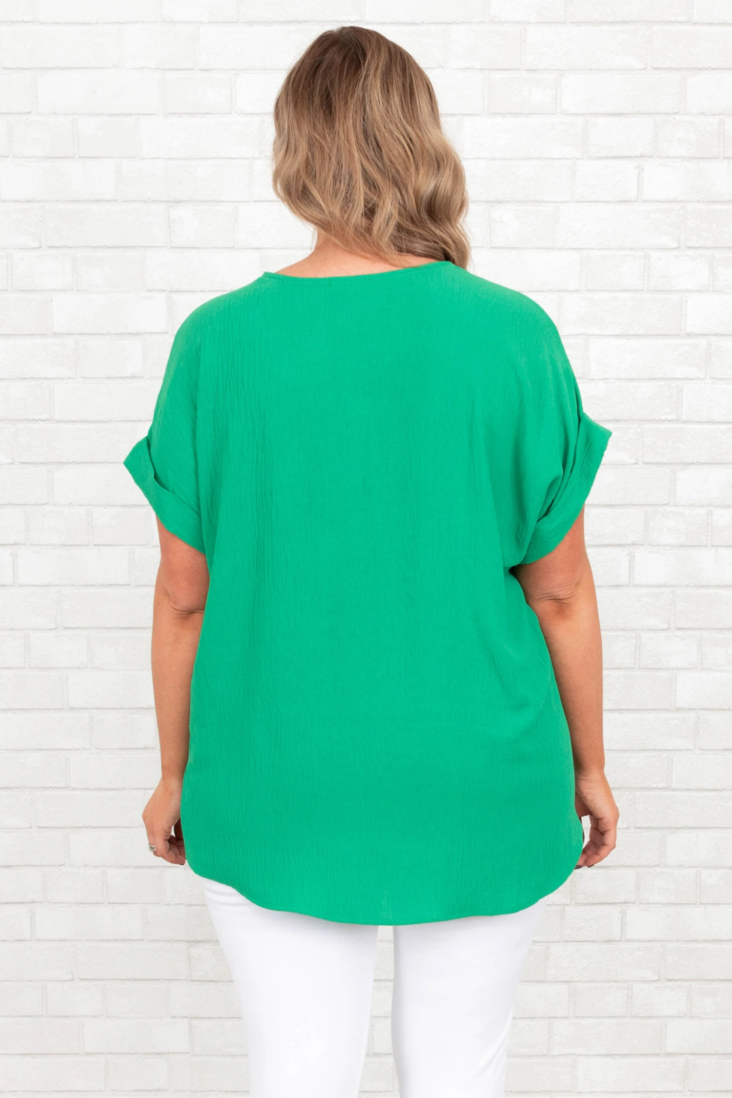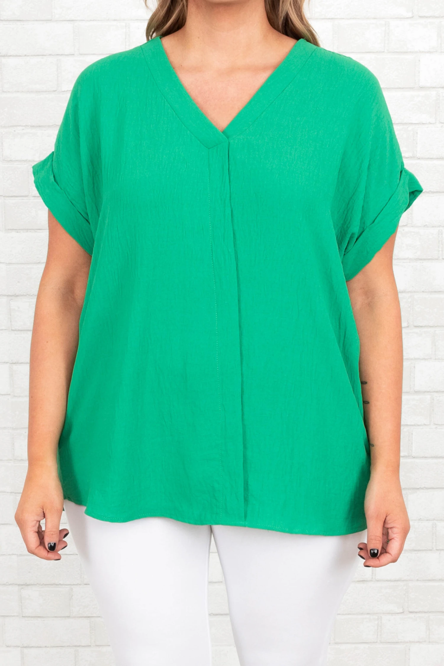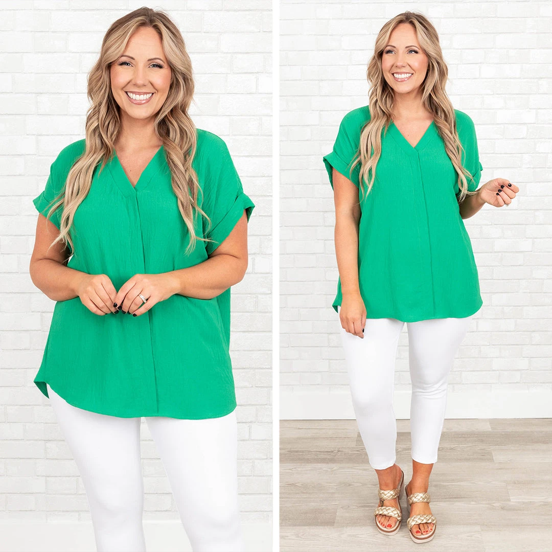 You definitely need this top in your wardrobe! The mesmerizing kelly green color is so bold and chic! The sleek design is so classy and easy to pair with all of your faves! The flowy fit is perfect for all day wear throughout the season! Pair this top with skinnies or leggings for a sassy chic look!