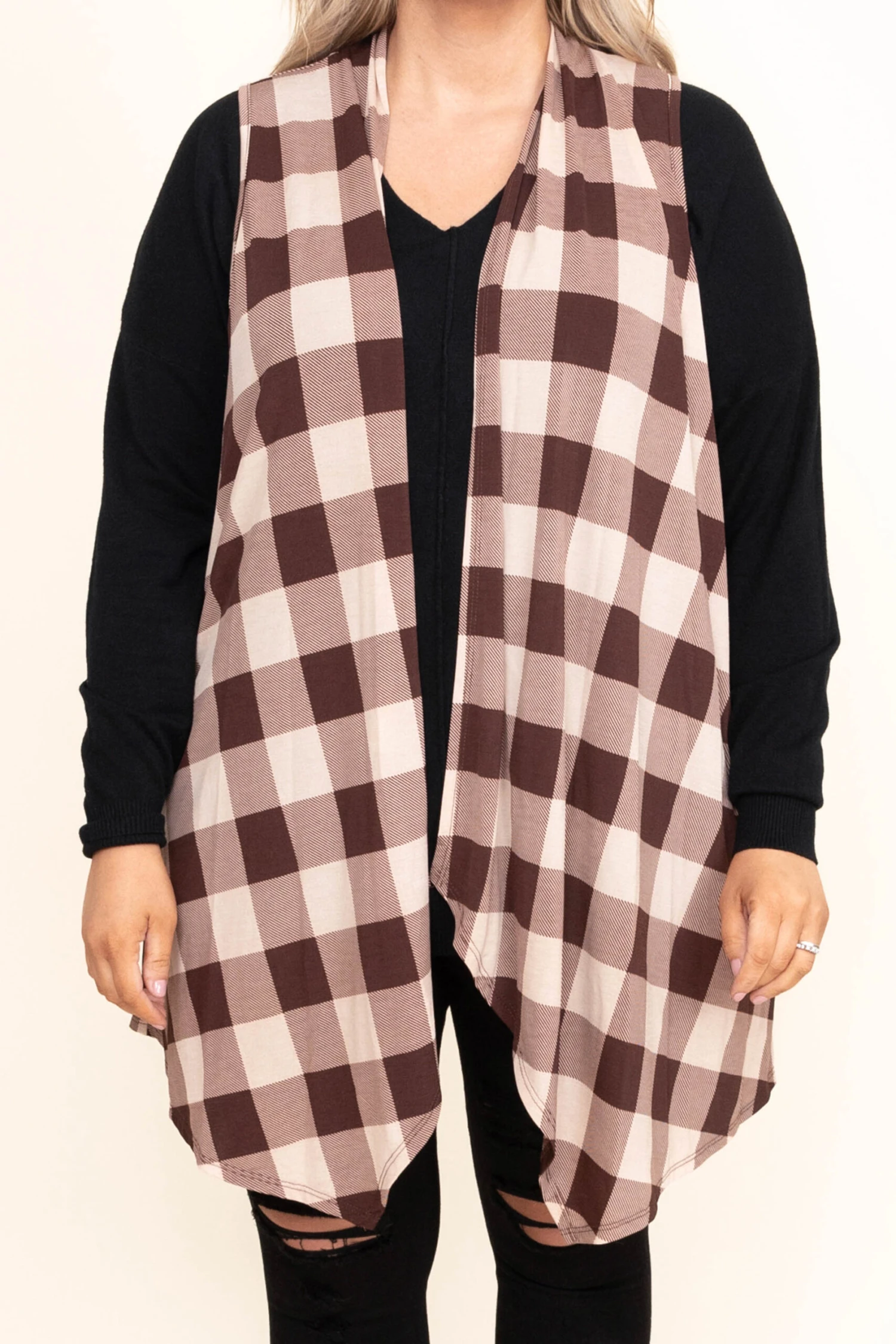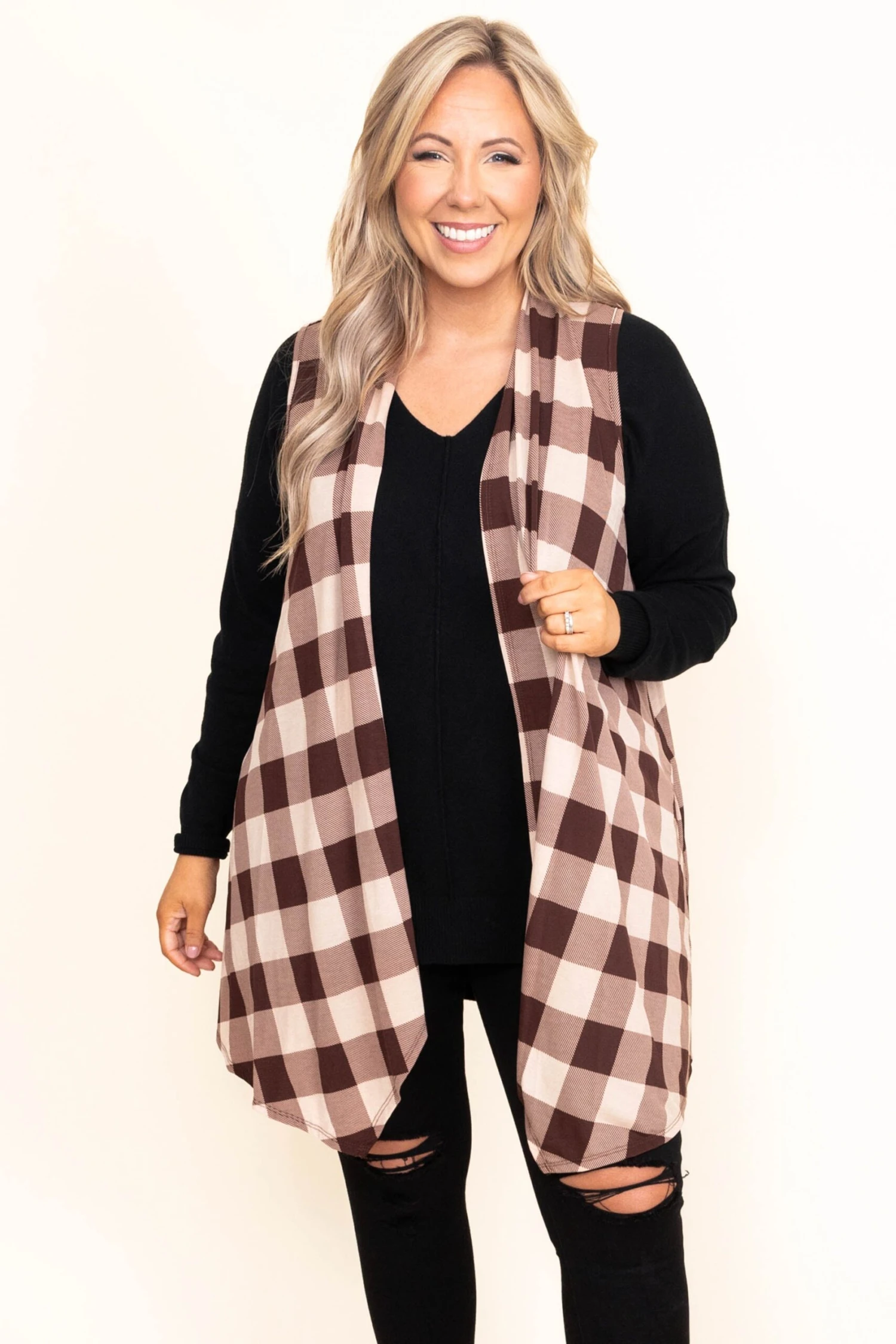 You will want to rock this cute vest most of the time this season! It has a classic mocha plaid print, and the inside is so soft you’re guaranteed to stay warm all season long! Layer it over any solid top and add skinnies for a cute fall and winter look!