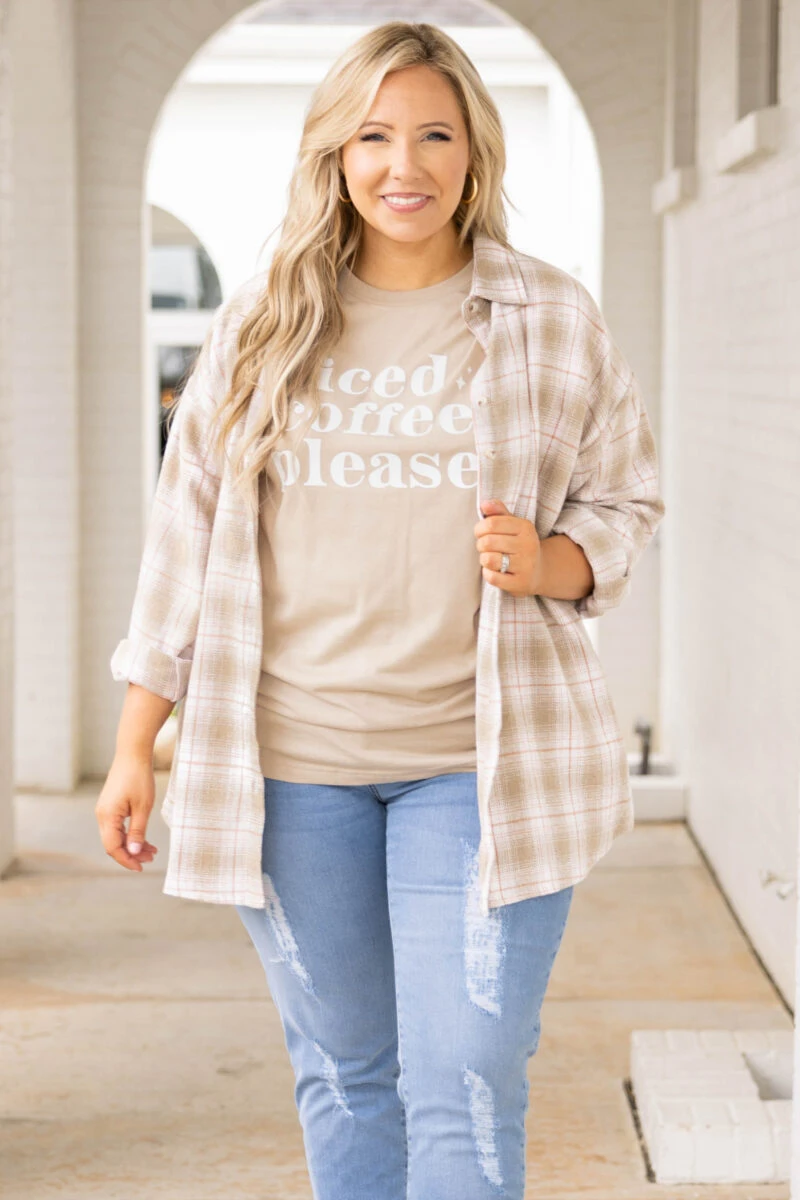 Taking a trip up the mountains? You’ll want to pack this shirt jacket! It serves as the perfect layering piece and will pair perfectly with your current wardrobe! This jacket has functional buttons, comfortable for all-day wear, and figure-flattering for all body types! Pair this tan jacket with your favorite graphic tee, jeans, and booties for a chic look!