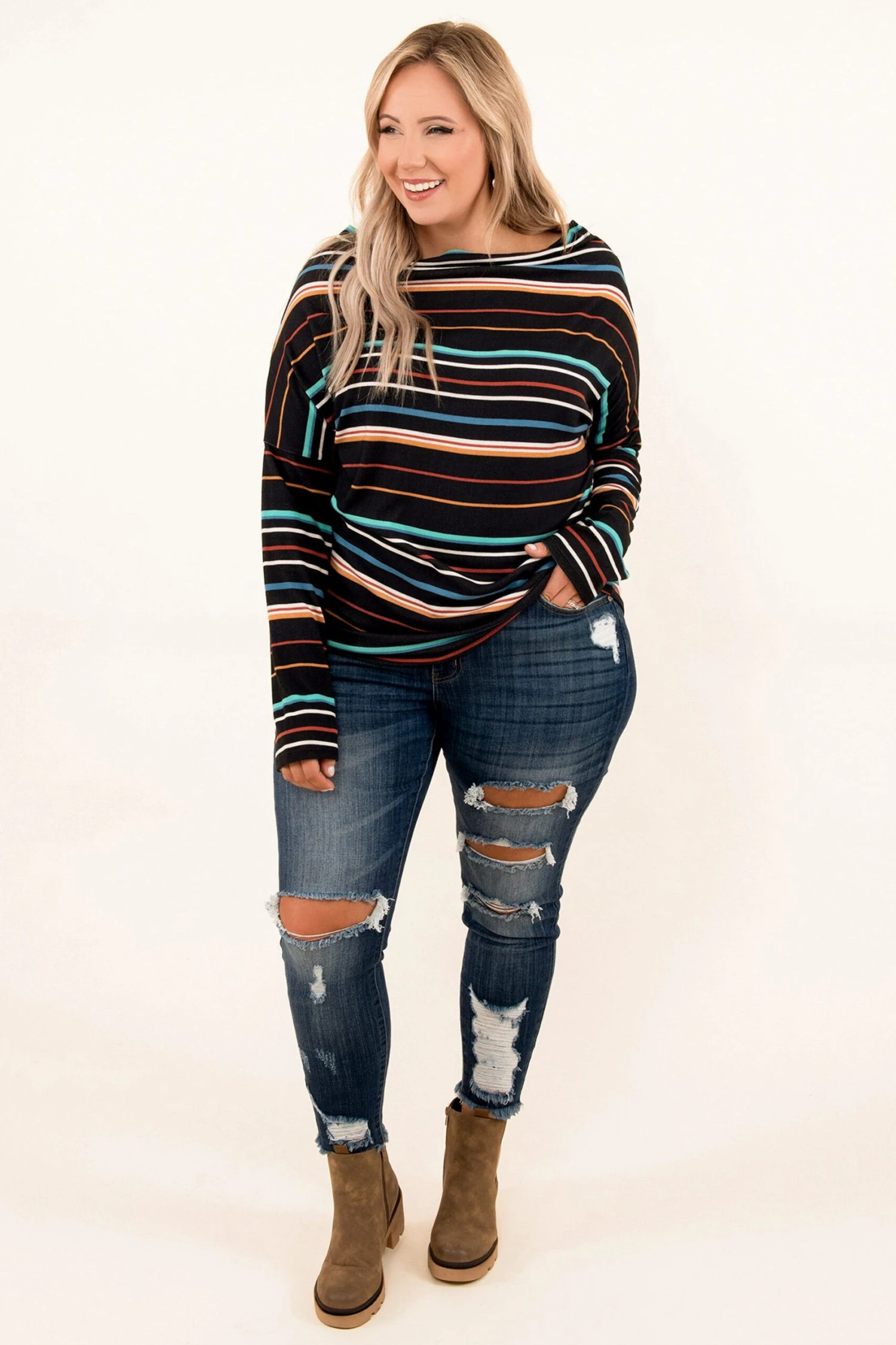 This top has the most fun stripes we have seen in any multiverse! It has a snuggly soft fabric, relaxed style and can be worn on or off the shoulder! Wear it lounging with leggings or running errands with skinnies and slides, either way you’re going to LOVE it!