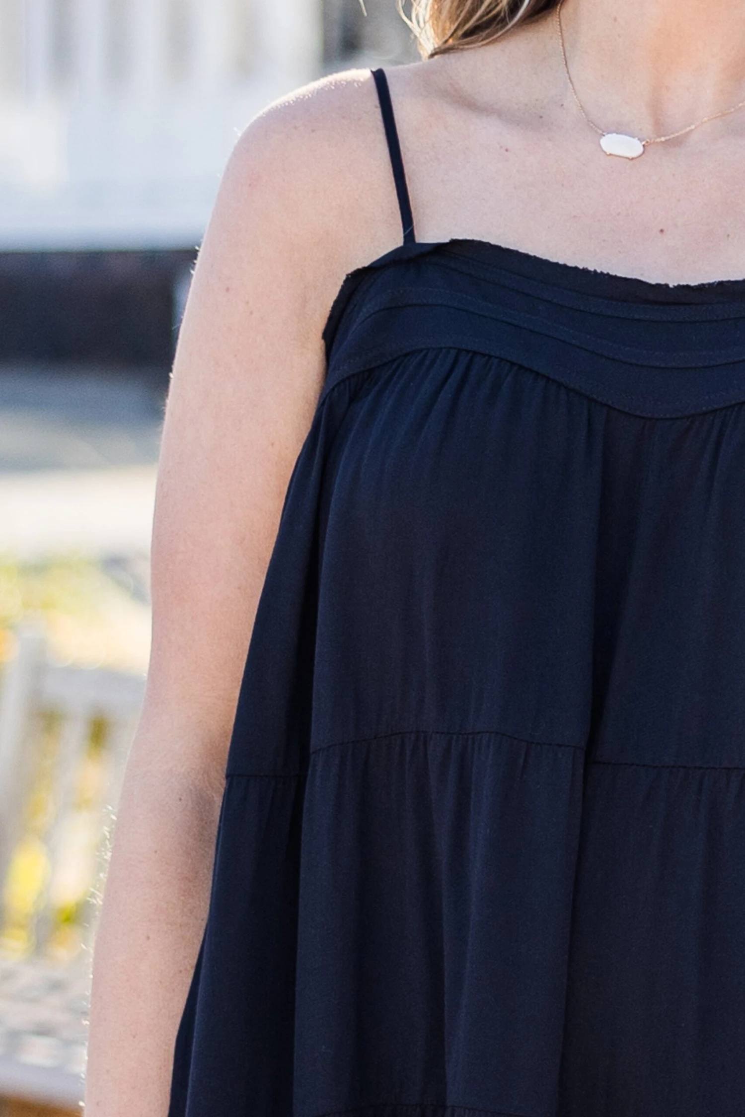 Discover the perfect combination of style and practicality with the Must Be Love Dress in black! Functional pockets, a flowy fit, and flirty length make this dress a versatile and comfortable choice! The frayed detailing and spaghetti straps add a touch of charm to this neutral black dress!