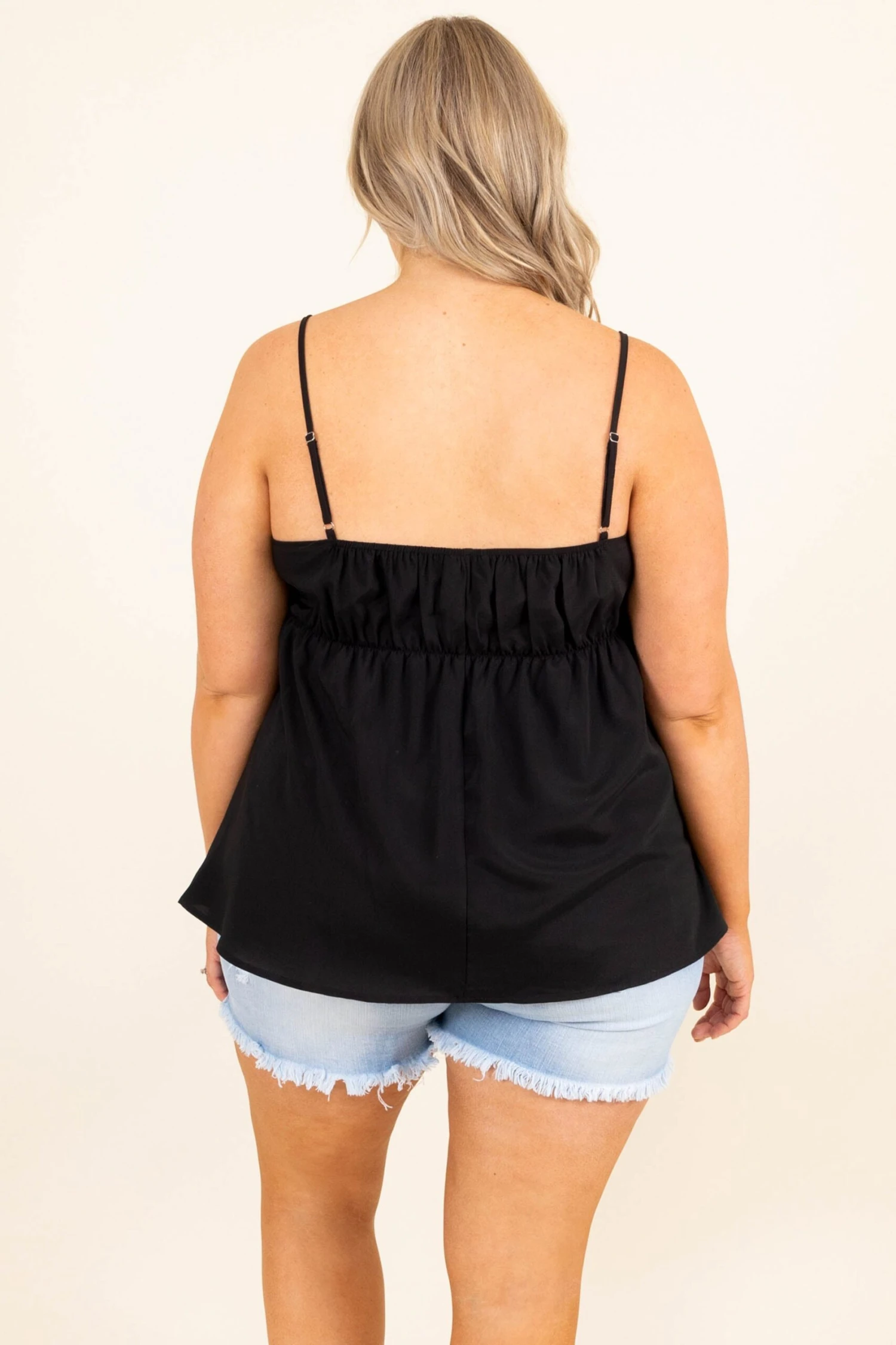 This top will be your first plan every time! The black color is classically chic and the stretchy material will keep you so comfy all day long! The adjustable straps will make sure you get the perfect fit and the tank style will keep you cool all day! Style this with some jean shorts and sandals for a perfect look!