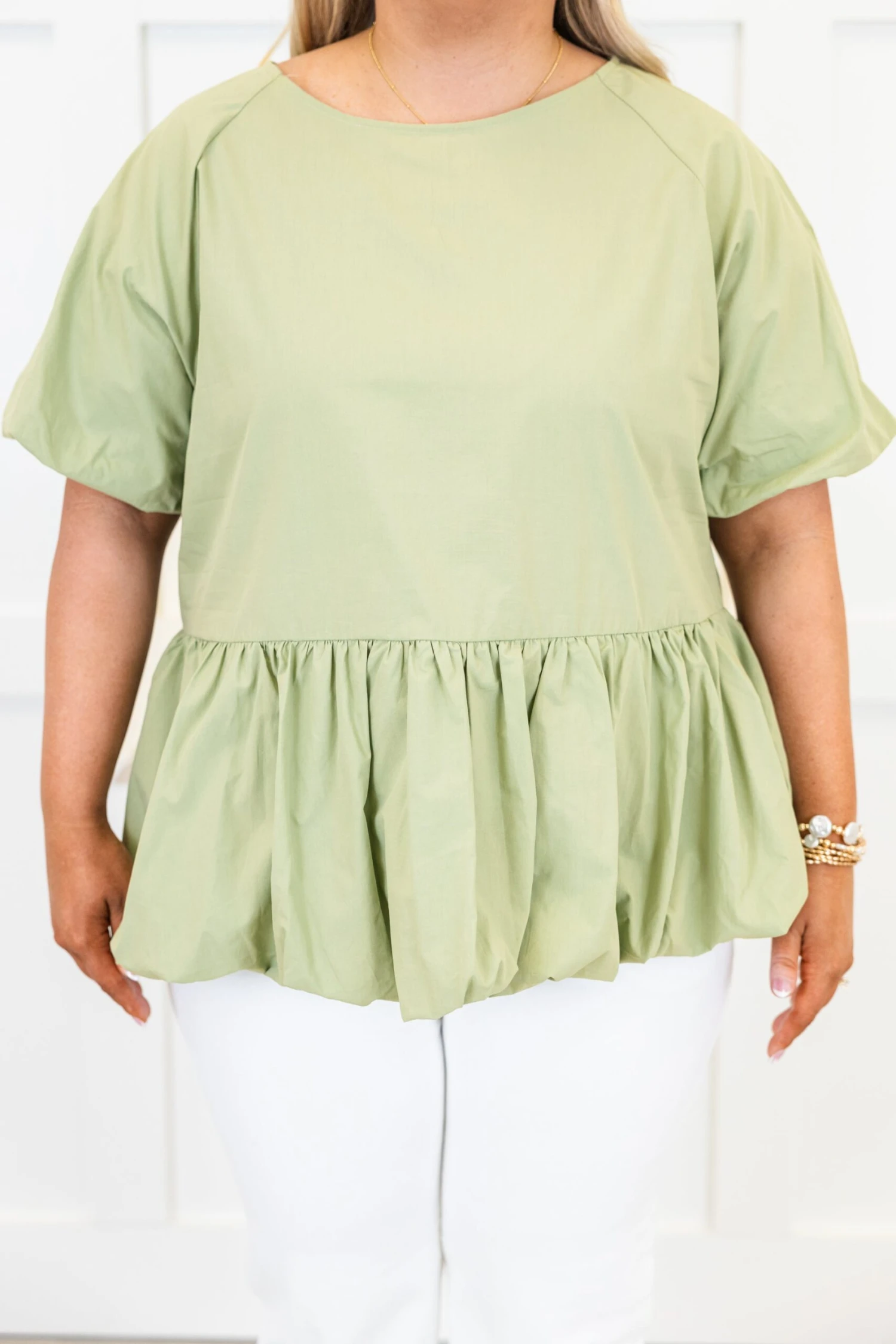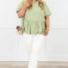 Unleash your inner fashionista with the My Call Top in sage! This playful peplum babydoll silhouette adds a touch of flirty charm to any outfit, while the elastic puff sleeves provide a comfortable and trendy fit! Complete with a keyhole button closure on the back, this top is perfect for any occasion!