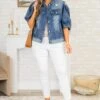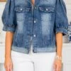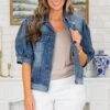 Introducing the My Candy Rain Denim Jacket – the ultimate statement piece for your wardrobe! With its cropped, three quarter sleeve design and mild distressing, this washed denim jacket is both stylish and versatile! Perfect for adding a touch of edge to any outfit!