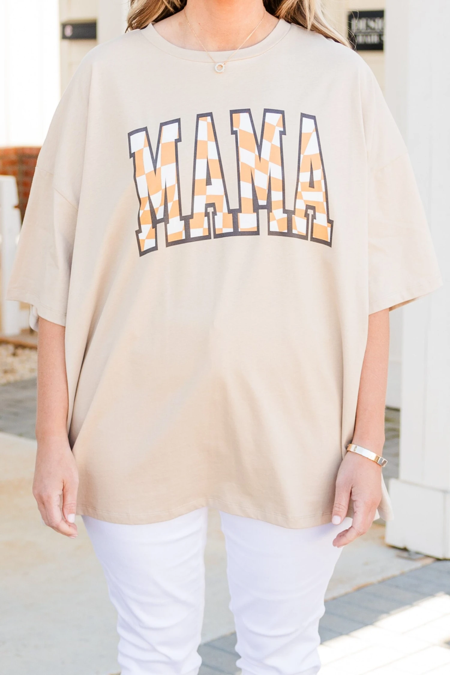 We are SO in love with this cute-tee! This boyfriend tee is the perfect choice for the season! The oversized fit and light mocha color provide both comfort and style! Show off your love for being a mom all year long!