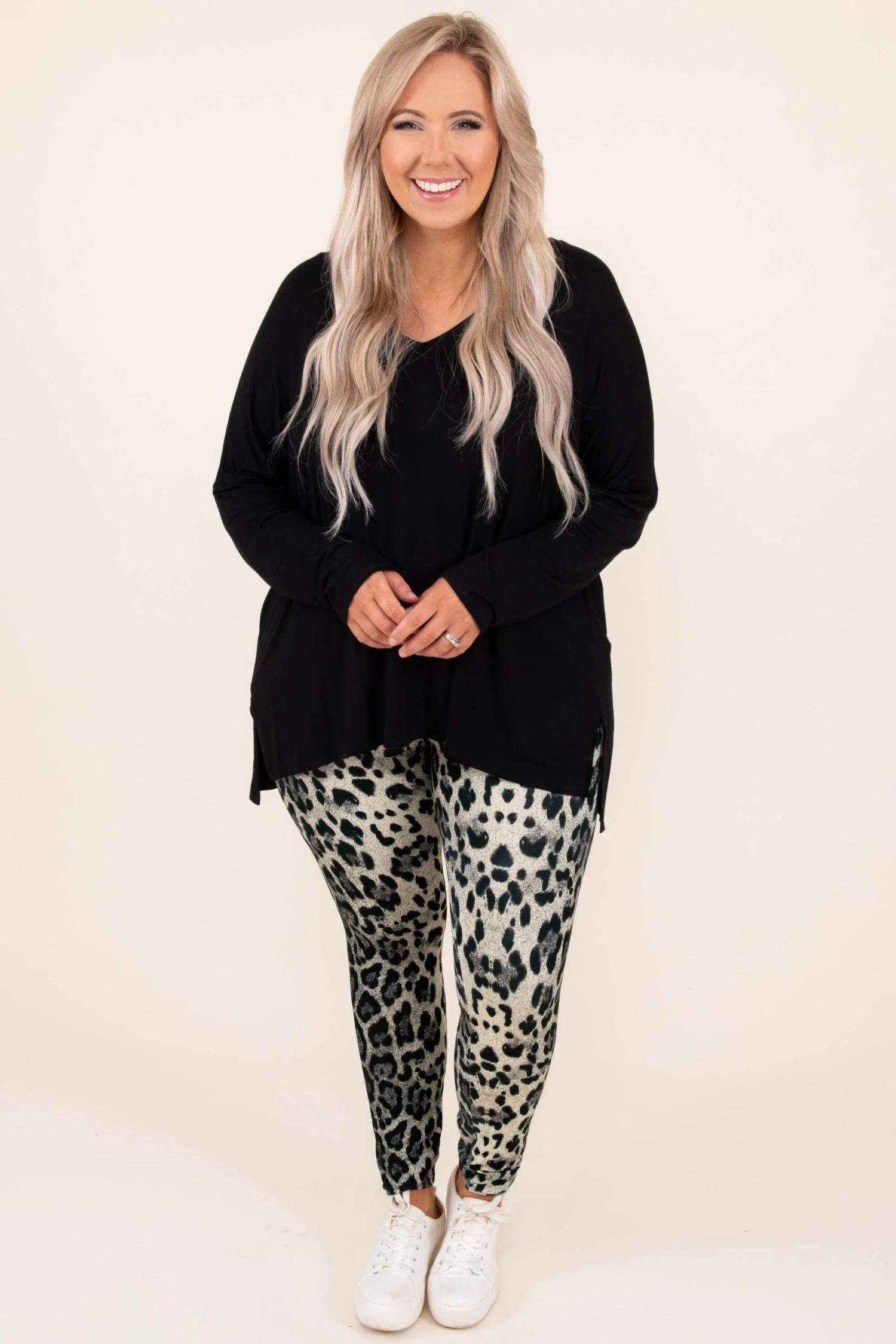Show off your feisty & fierce side in these leggings! They have a bold leopard print with neutral colors you can style for every occasion! They’re comfortable for all-day wear, have a figure-flattering fit, and can be dressed up or down with ease! Style these leggings with a basic top and flats for an easy everyday look!