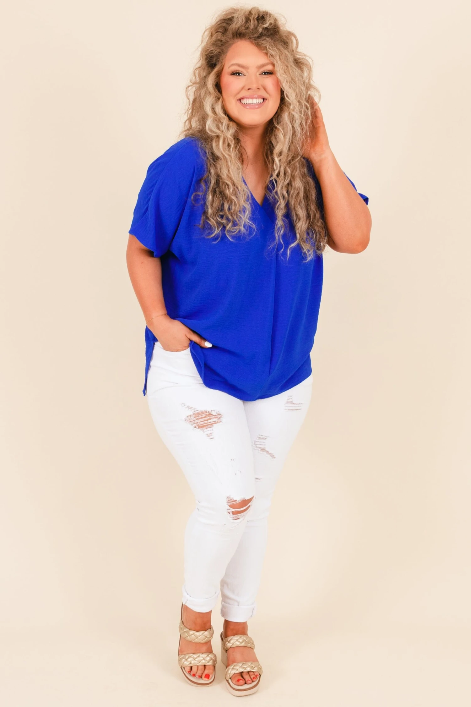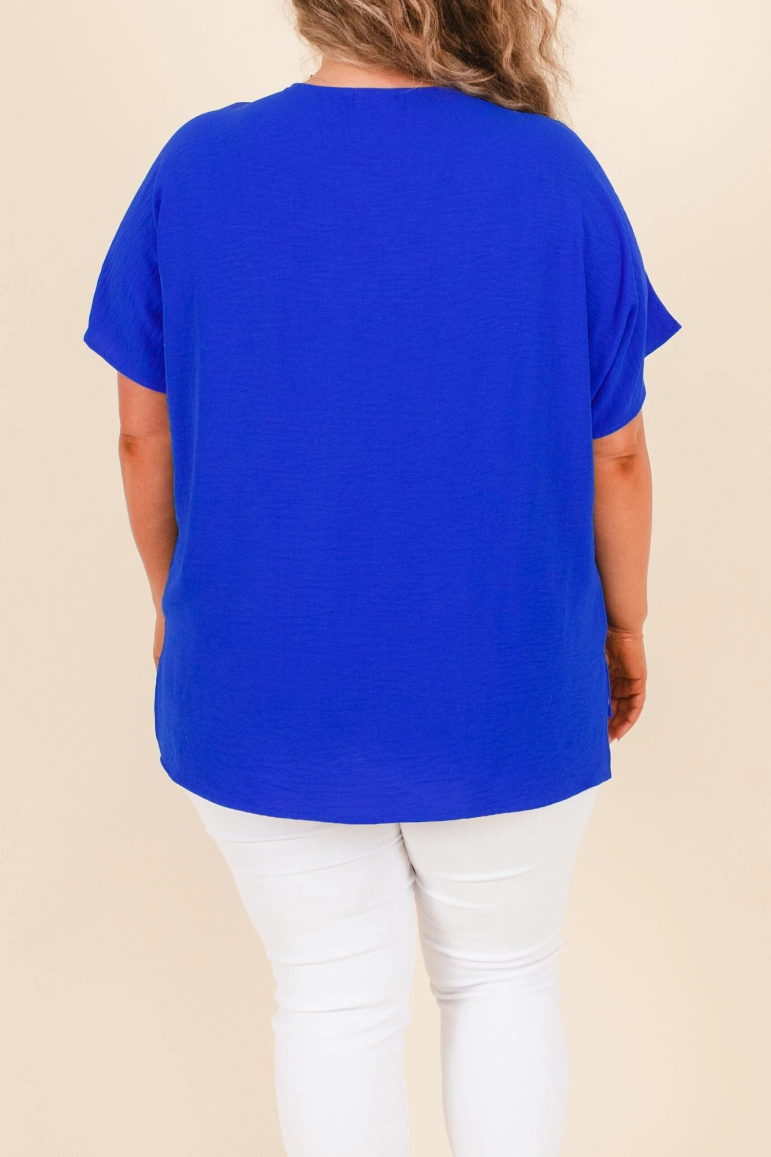 This beauty is the perfect fashion choice for the season! It features a flowy, light fabric that’s perfect for keeping you comfortable and stylish! The bold royal blue color is sure to pair well with any look!