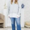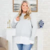 Enhance your wardrobe with this adorable sweater! The soft, faux layered fabric provides warmth, comfort, and a trendy layered look! The classic gray color adds a touch of feminine charm to any outfit! Up your sweater game with this must-have addition to your collection!