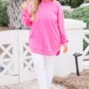 Achieve effortless style with this lovely tunic! Featuring a bold bubblegum color and distressed seam, this tunic adds a pop of color and texture to your wardrobe! It pairs perfectly with white denim for a chic and trendy look!