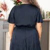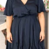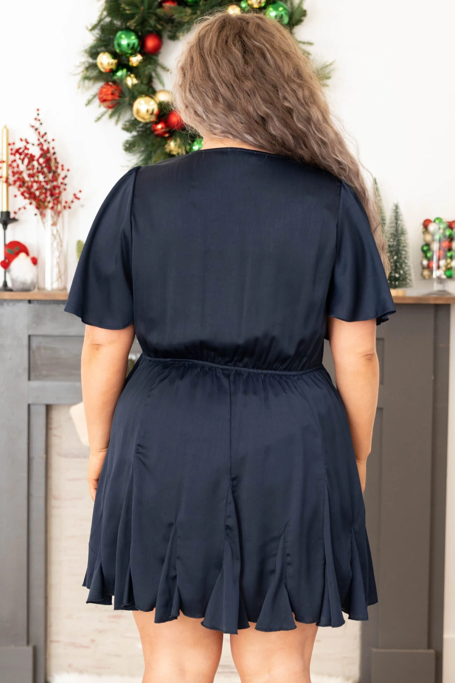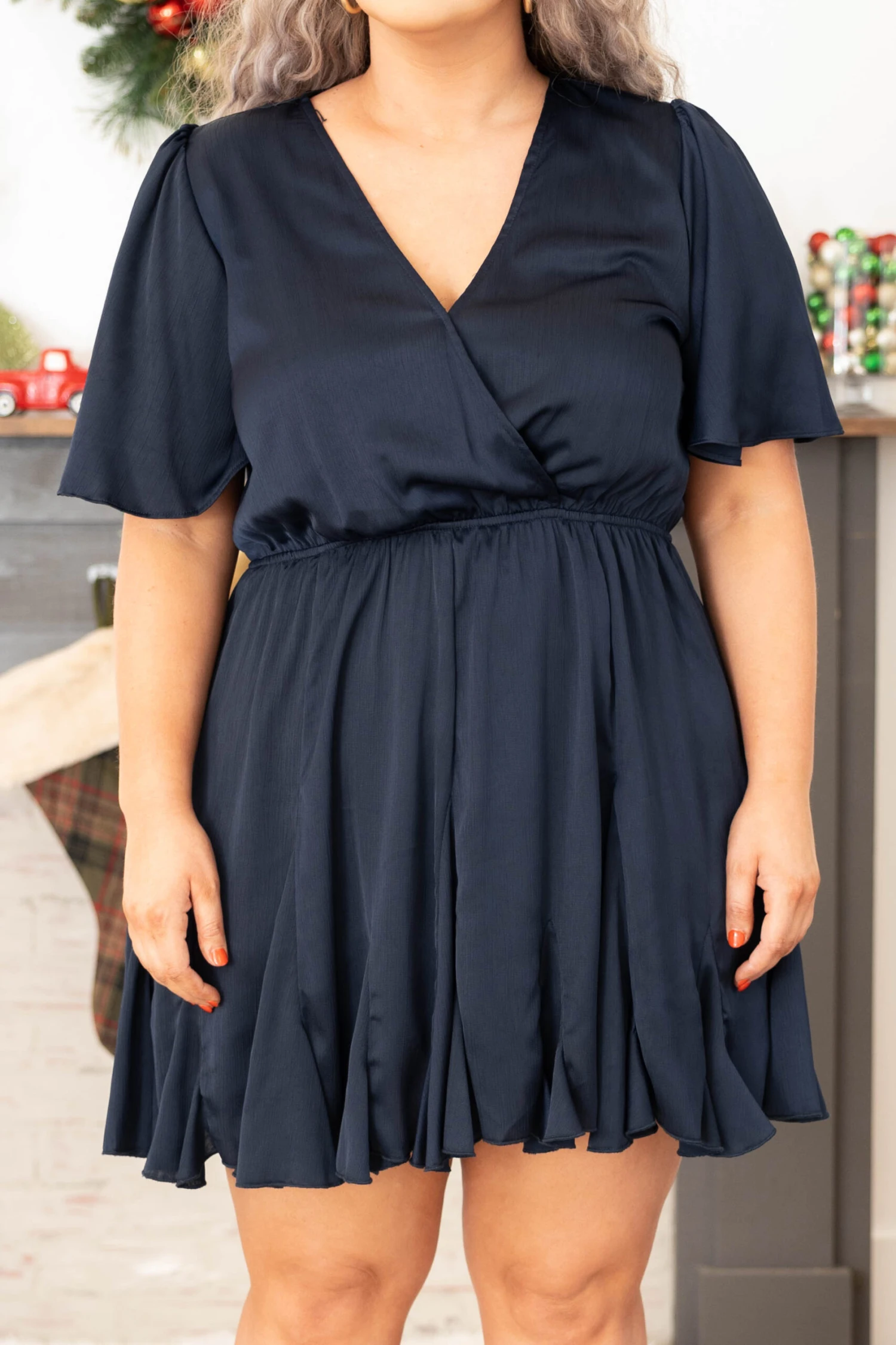 This dress is a precious one! This cutie has a solid navy color that can be paired with anything and a satin feeling material that is super lux! The cinched waist is so flattering and the bust has snaps for a fuller coverage look! Style it with some heels and fun accessories for a perfect look!