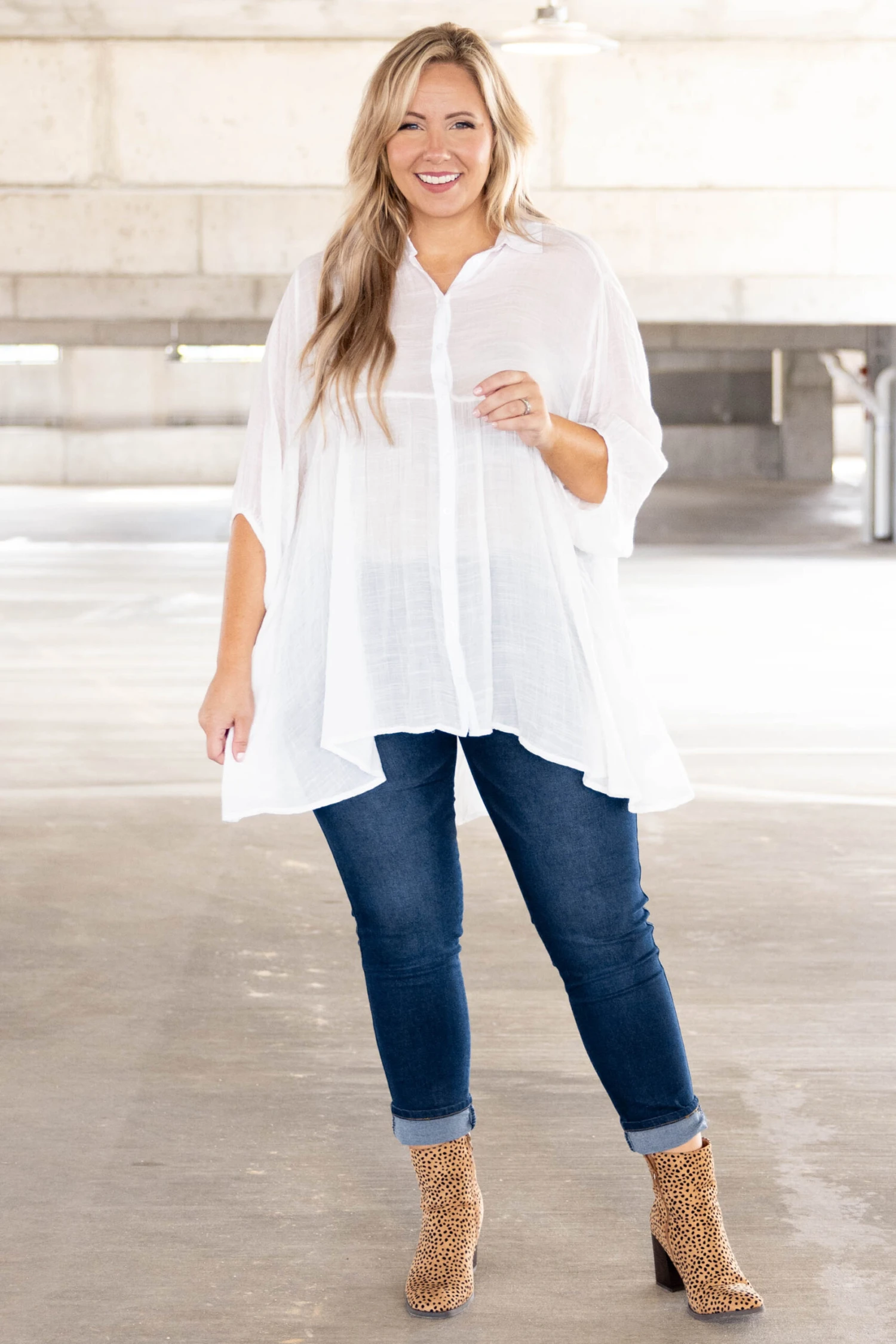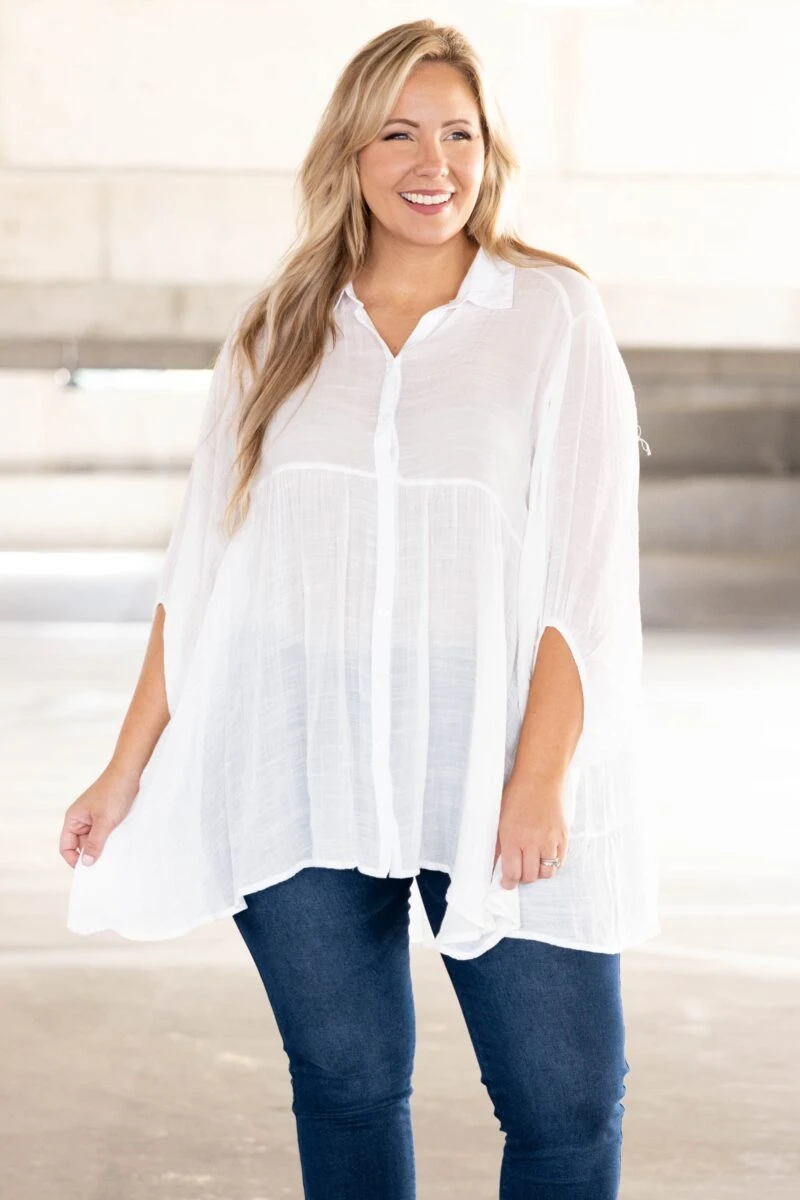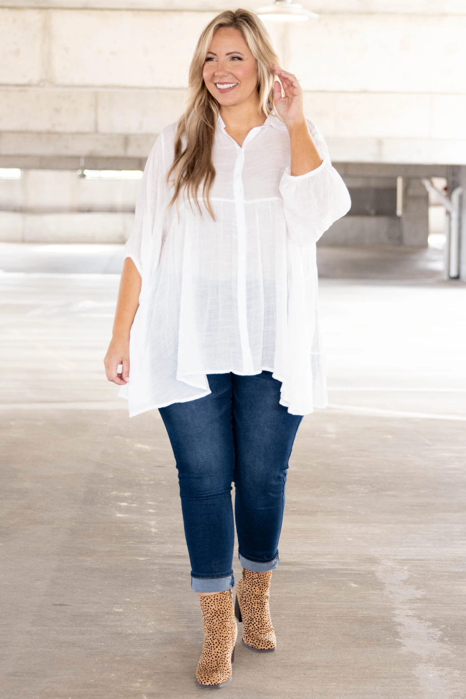 We are not tricking you! This is the perfect top for the Fall season! This tunic top has a trendy off white color you can style for every occasion! It’s comfortable for all-day wear, has a flowy fit, and features the cutest button-down style! Pair this top with skinnies and booties for an effortlessly chic look!