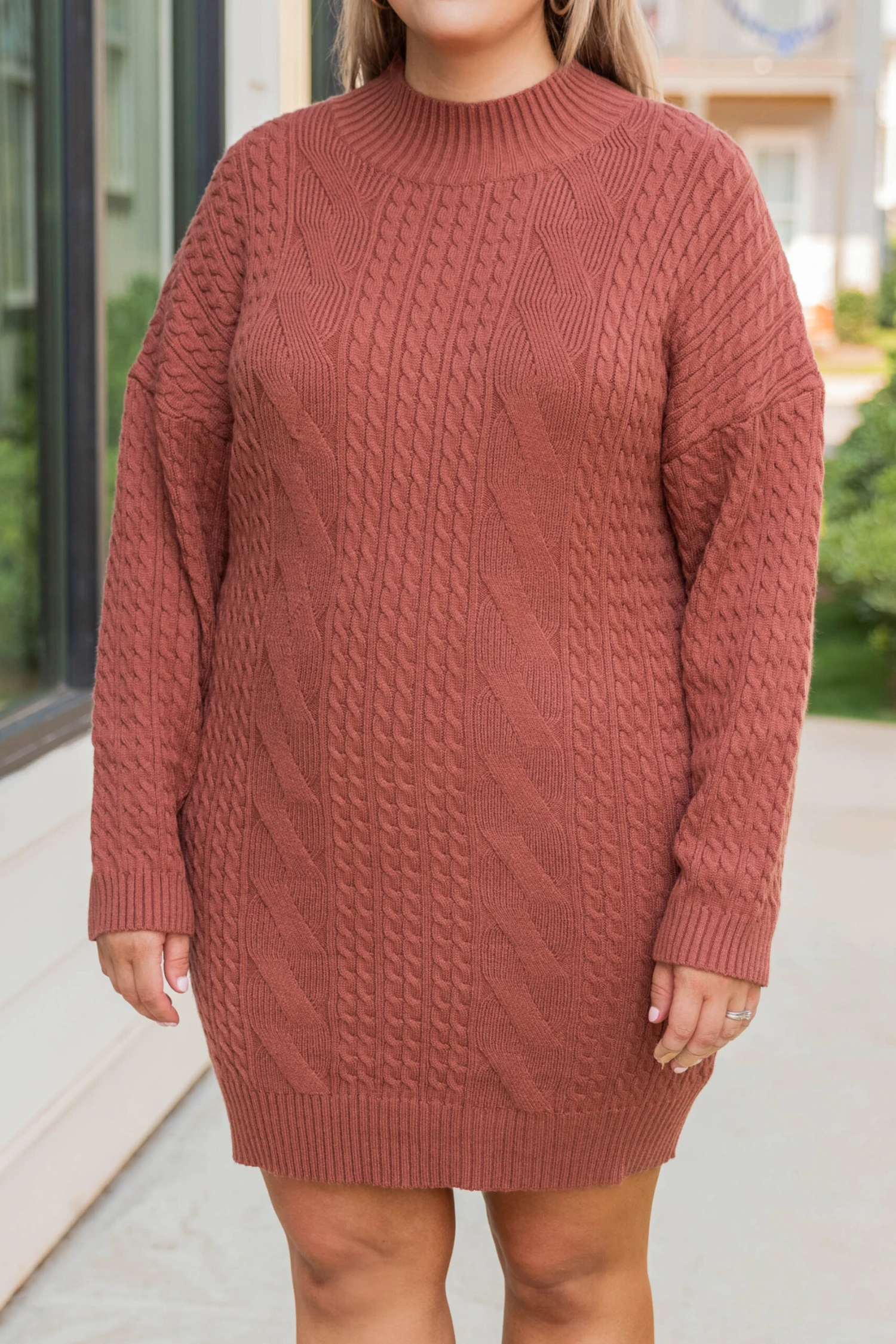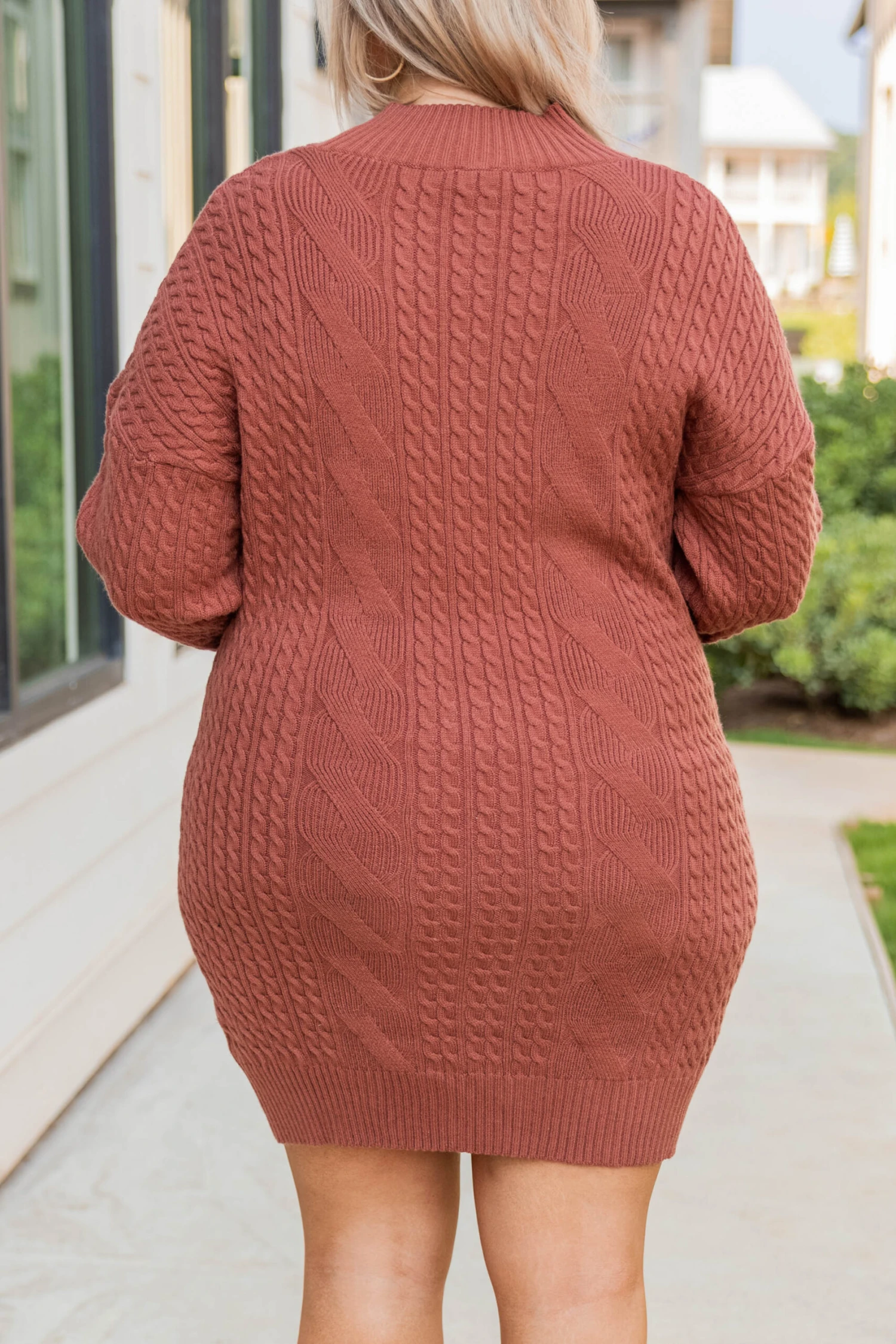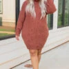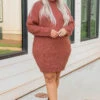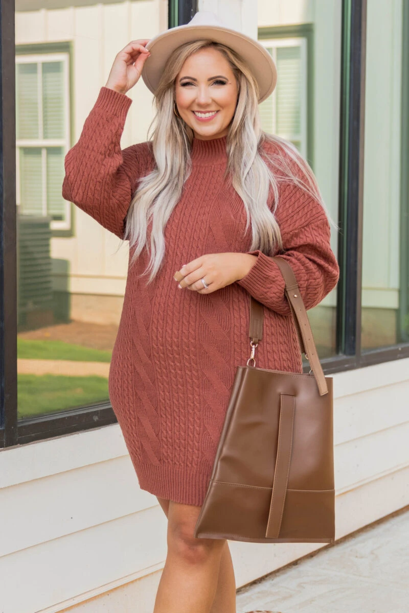 Whether you’re feeling naughty or nice you need this dress! This chic sweater dress has a beautiful red bean color you can dress up or down and style for every occasion! It’s comfortable for all-day wear, has a figure-flattering fit, and features the cutest high neckline perfect for laying jewelry! Simply, style this dress with sneakers or booties for an easy everyday look!