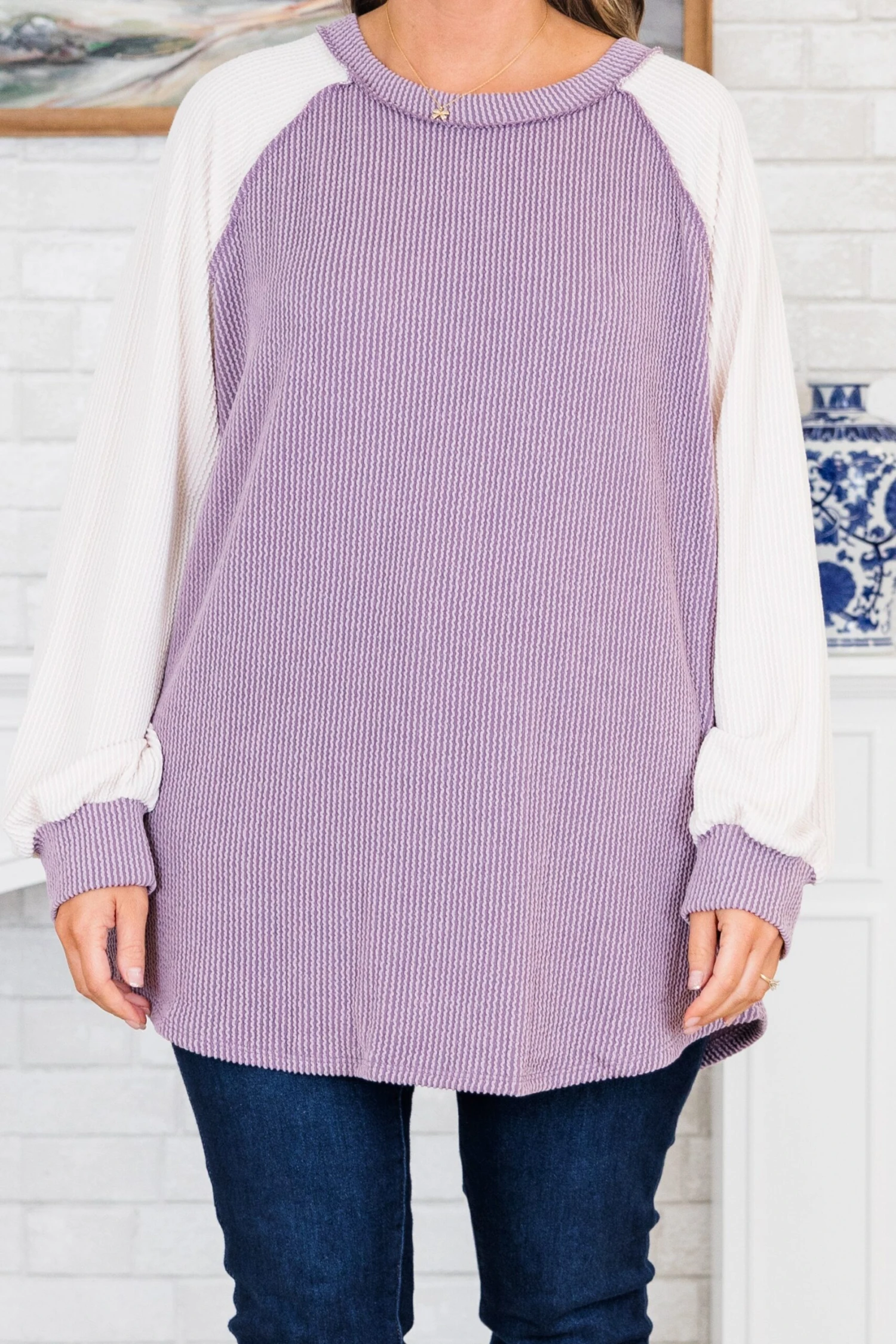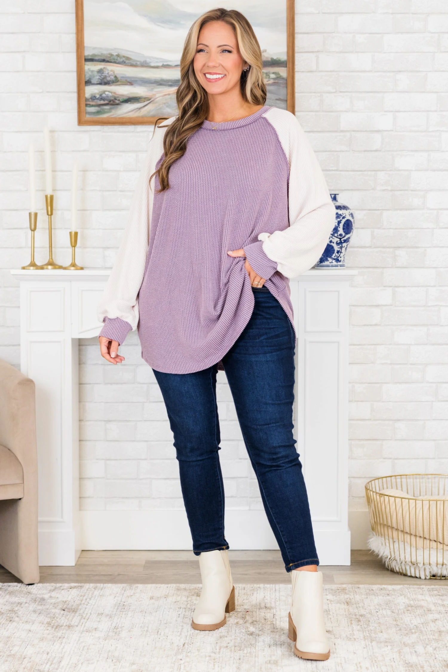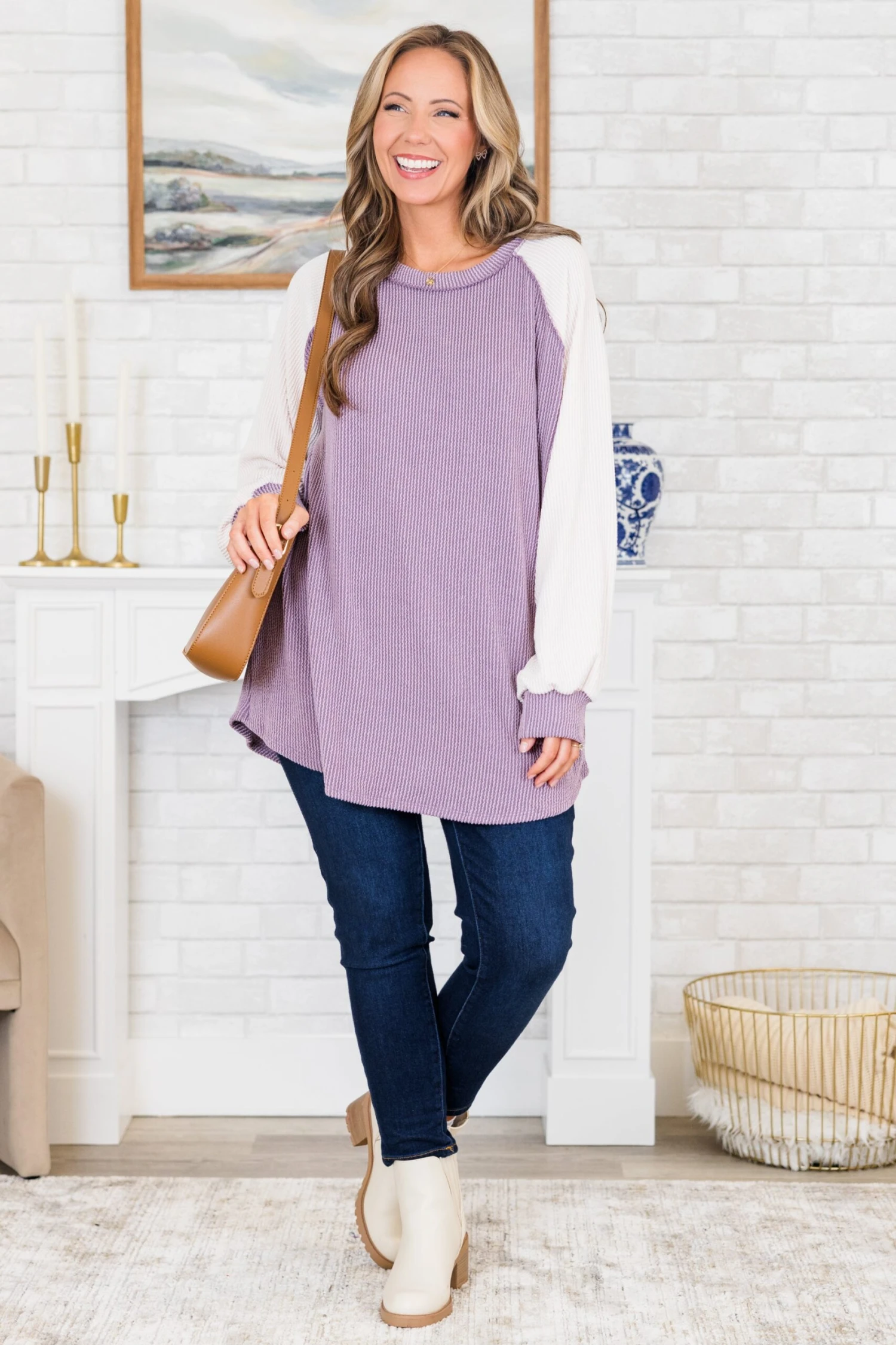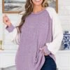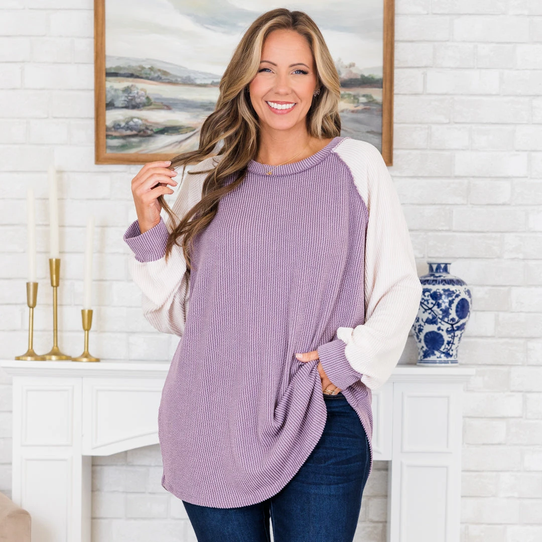 Stay on trend with this top! This playful and stylish top features a ribbed design with two toned colors, perfect for adding a pop of color to any outfit! With a versatile dusty lavender hue, it’s sure to become a staple in your wardrobe for any occasion! Don’t miss out on this must-have piece!