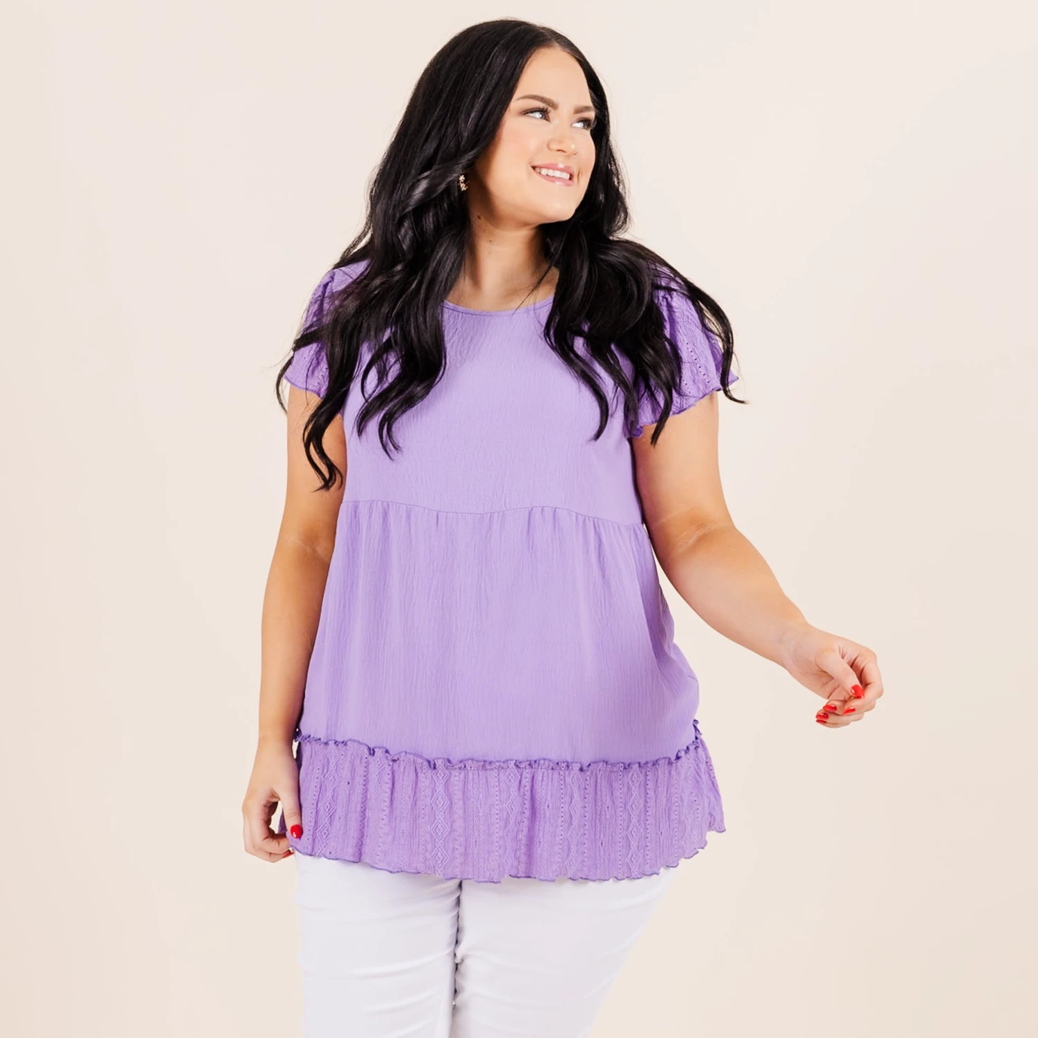 Shine bright like a star in this casual cutie! We love its delicate lace detailing, flowy fit, and pretty lilac color! Its ruffle detailing and babydoll design adds a touch of chic! Perfect for any casual occasion and versatile for day or night!