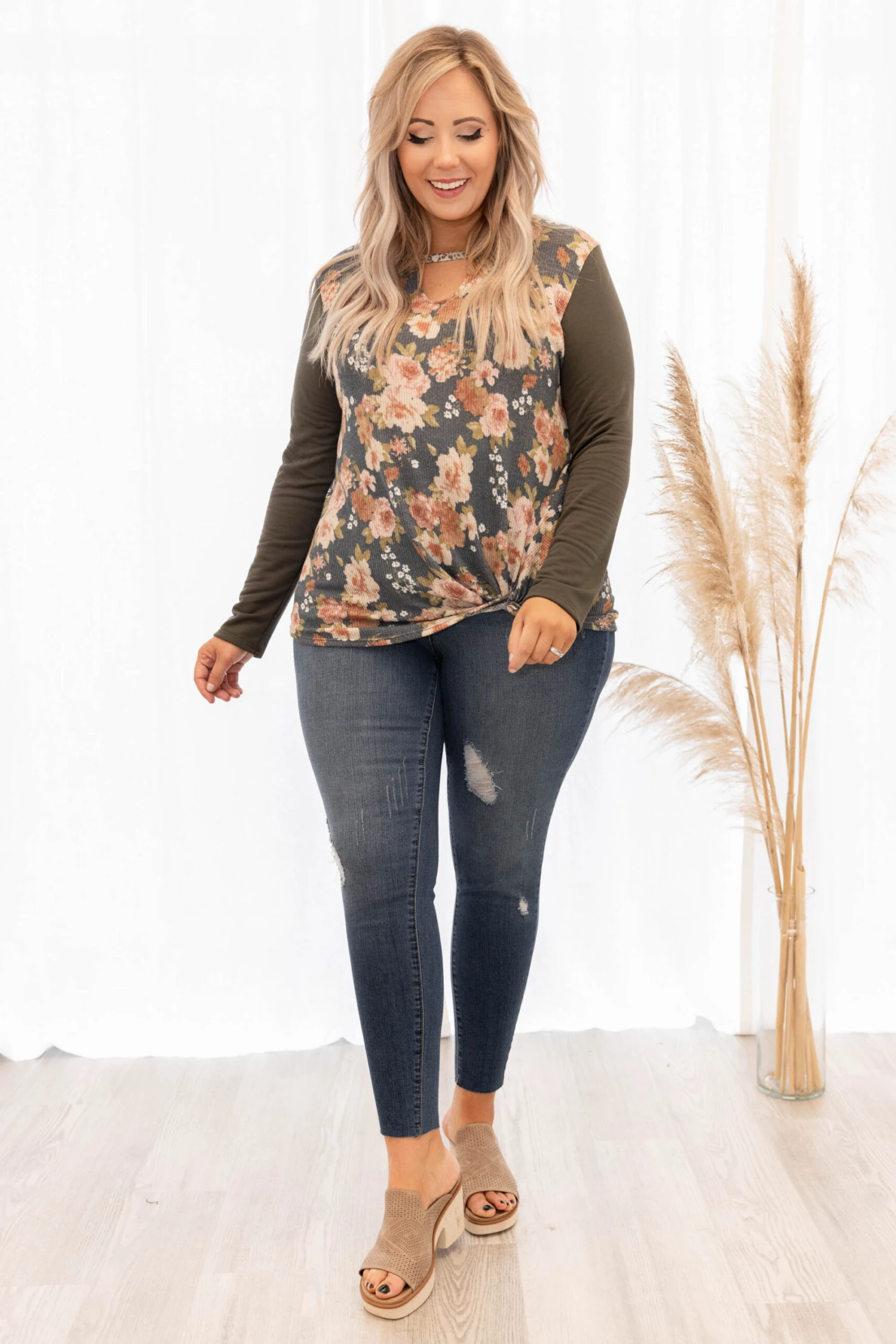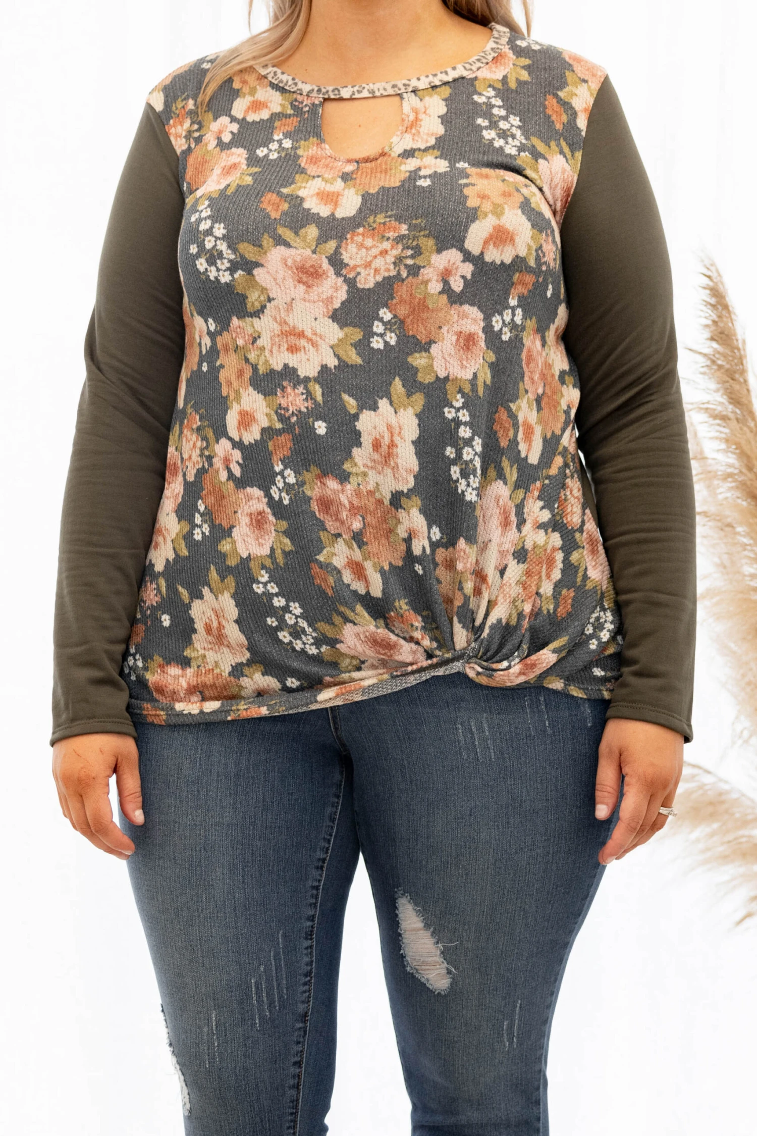 You will love this top! It is perfect as we transition from summer to fall and will be the perfect floral top in your closet! It features a beautiful floral design and soft material that is sure to flatter every figure! It has just the right amount of stretch that will keep you comfortable all day long! Pop on a vest or a jacket and some skinnies to complete the look!
