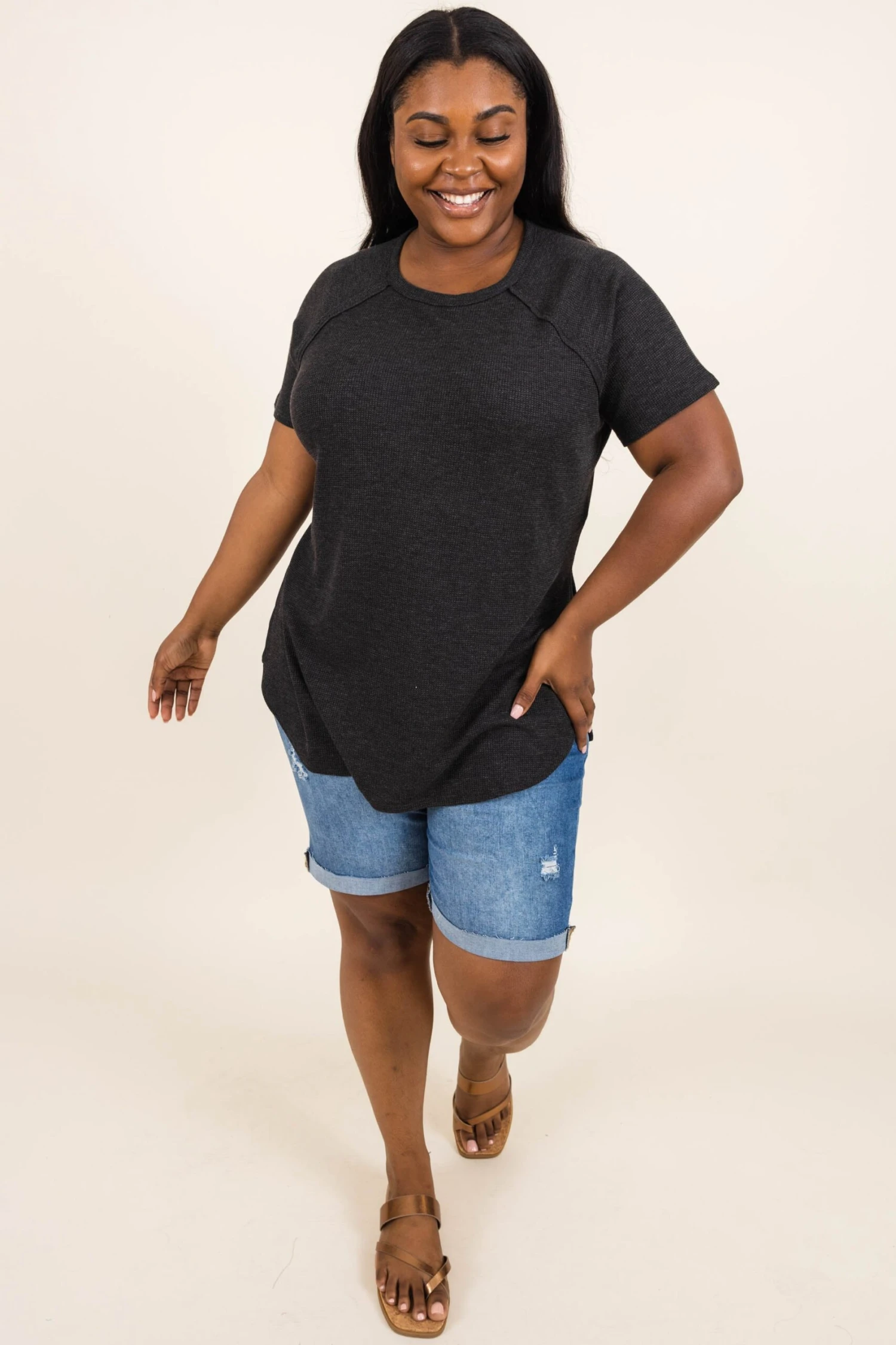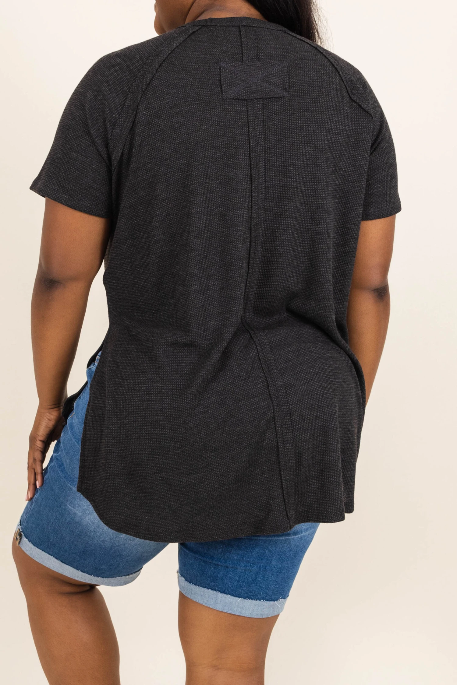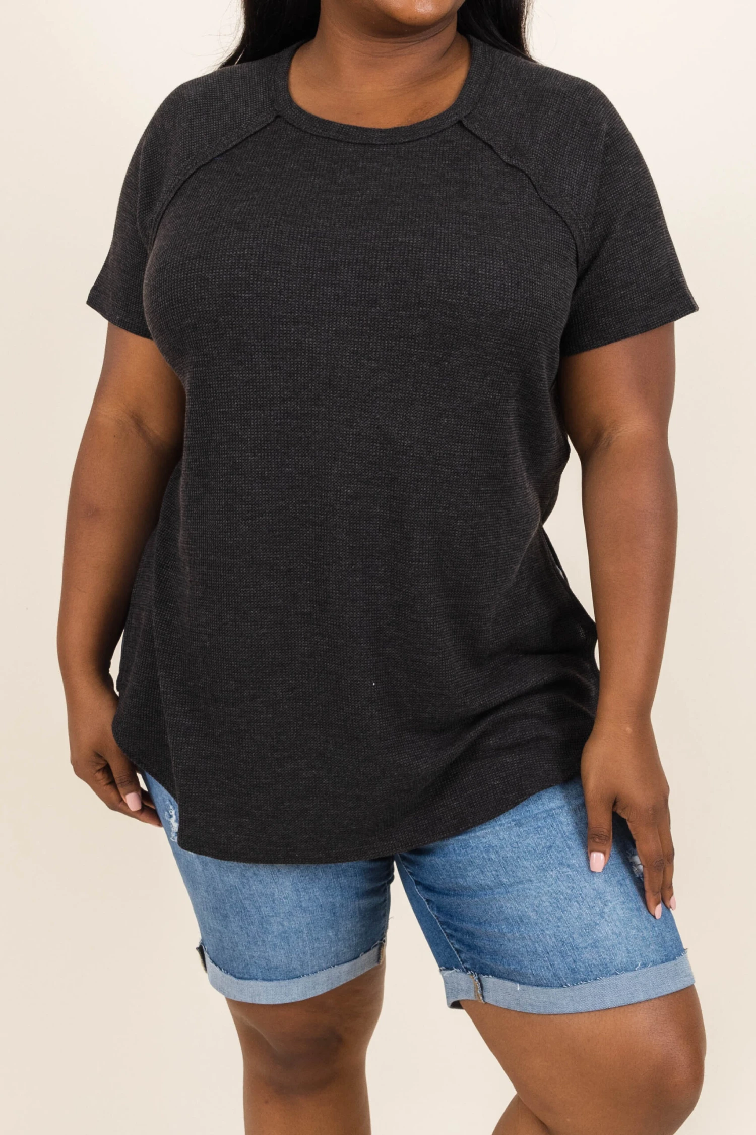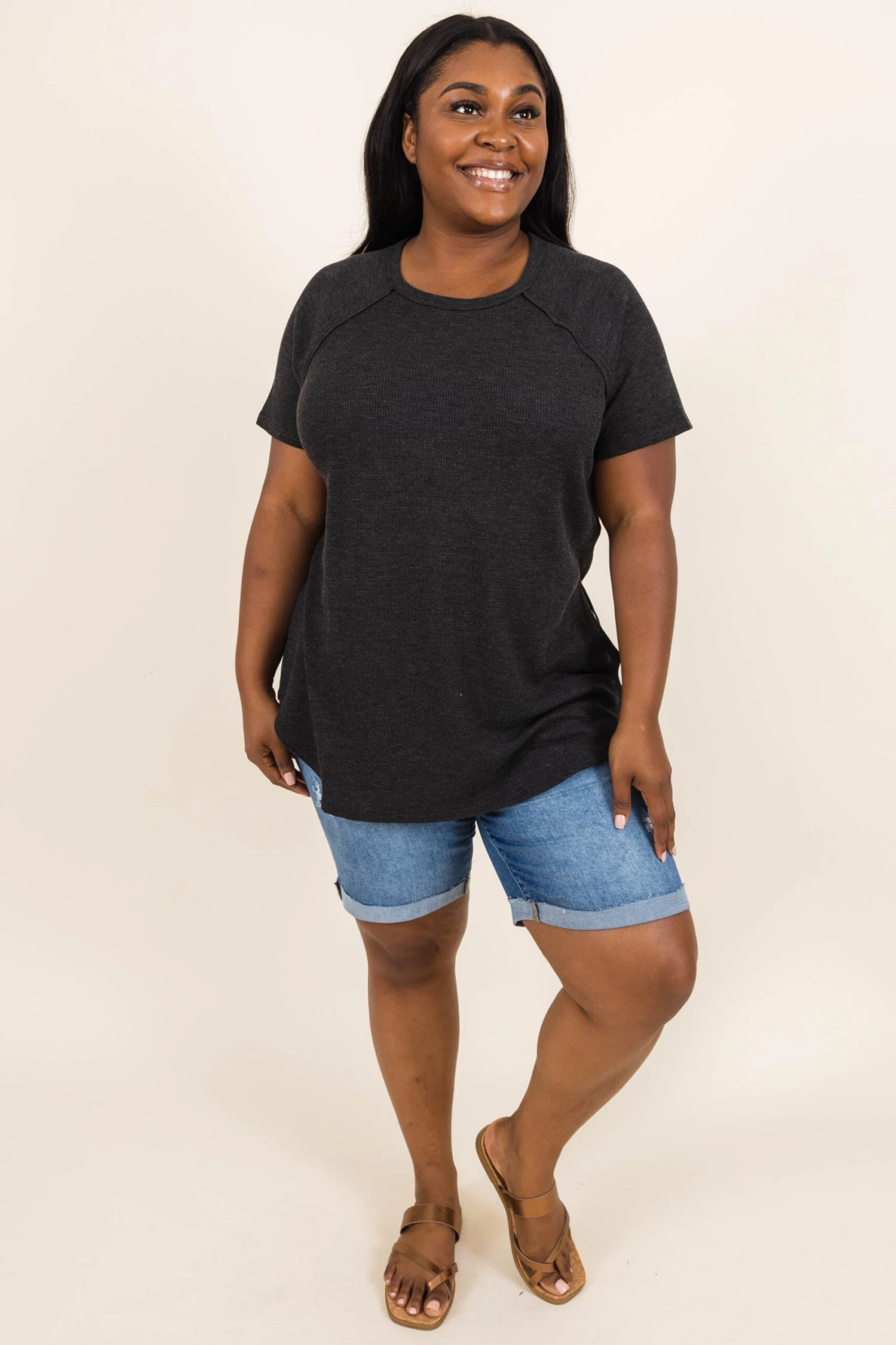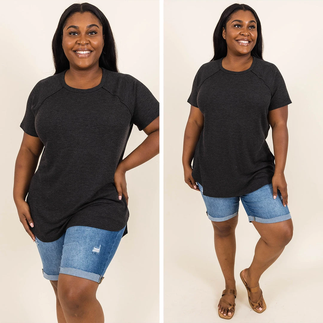 You won’t be able to get enough of this cutie! This top has a classic black color with a comfy fit that is so sweet you’ll never want to take it off! The lightweight feel and flowy design is great for pairing with all of your favorite shorts or skinnies for a casual chic look!