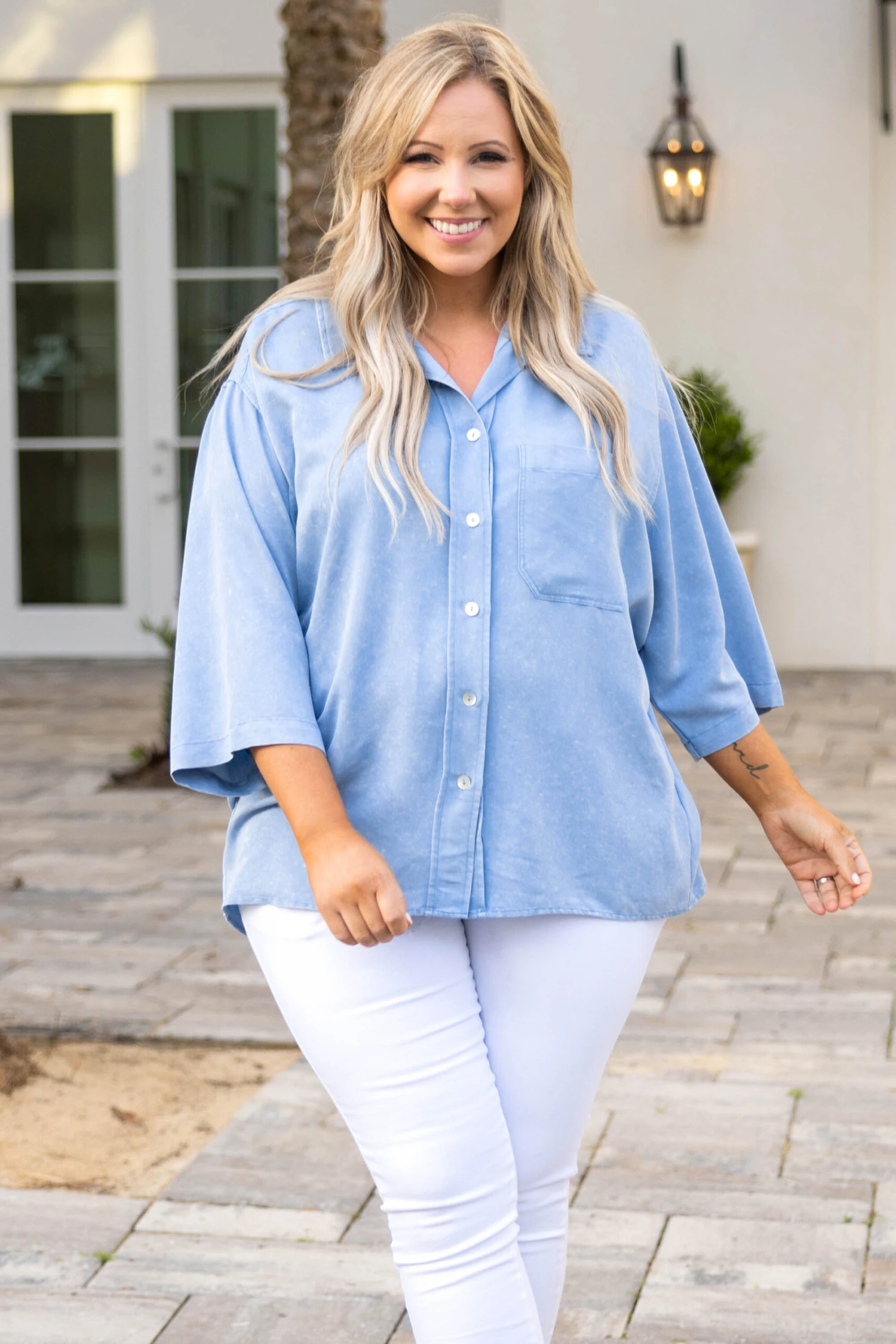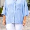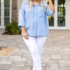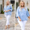 Needless to say – we love this top! It has a chic light denim color you can style for every occasion! It’s comfortable for all-day wear, has a figure-flattering fit, and features a button-down design for the ultimate look! Pair this top with your fave skinnies and heels for an effortlessly chic look!Â