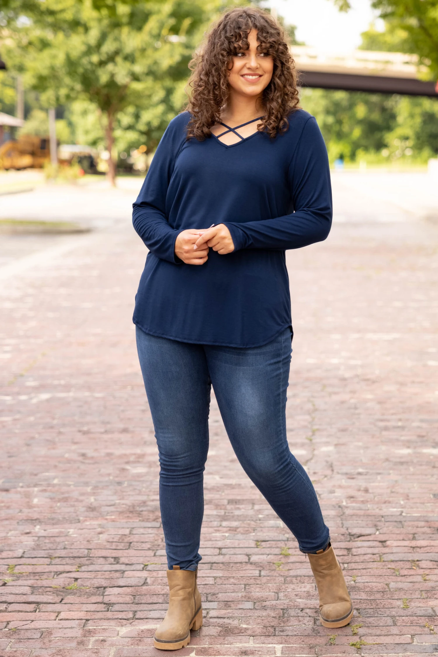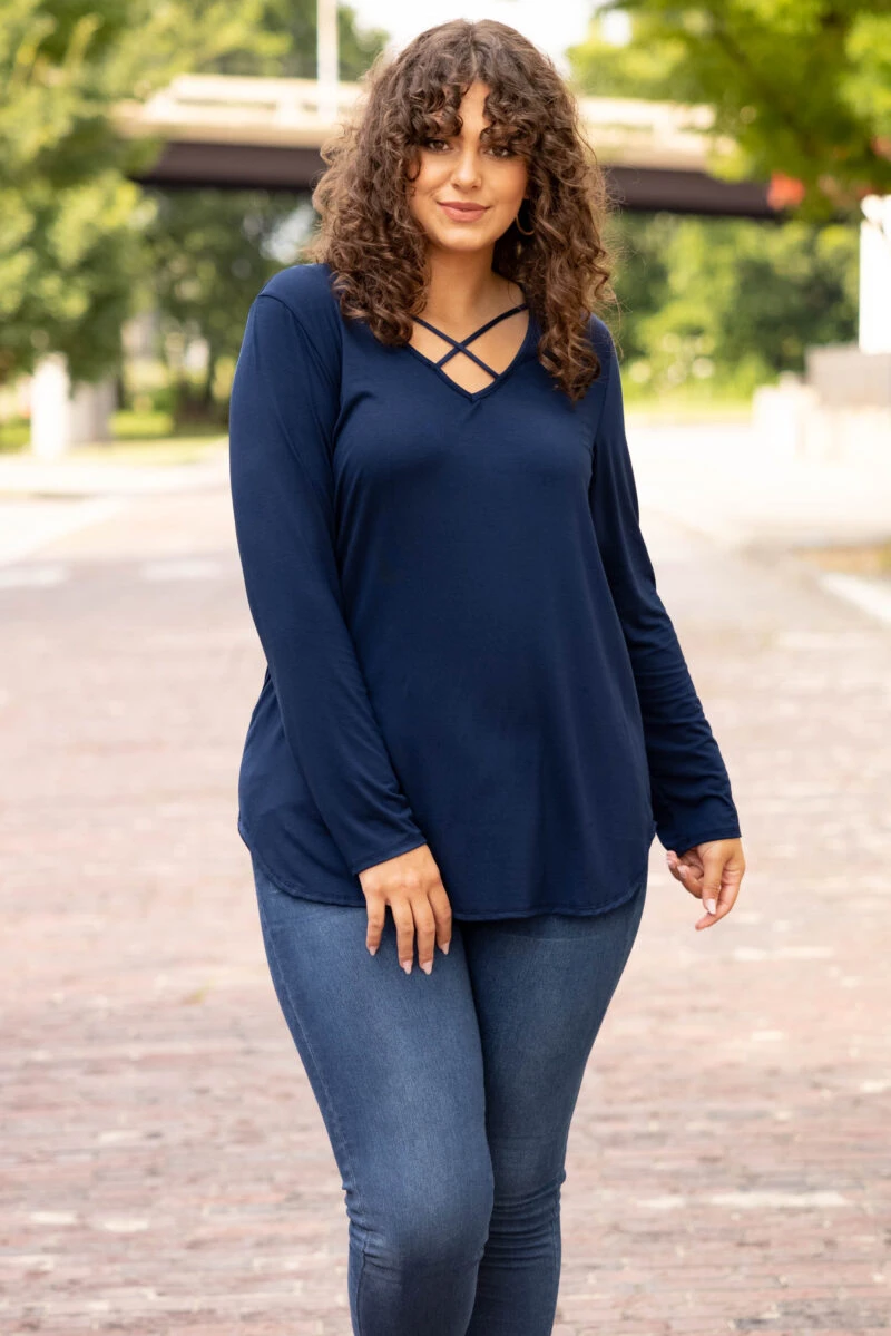 This top is oh so nice! It has a solid neutral color you can dress up or down for every occasion! It’s comfortable for all-day wear, has a figure-flattering fit, and features the cutest crisscrossed neckline! Simply style this top with skinnies and mules for an effortlessly chic look!