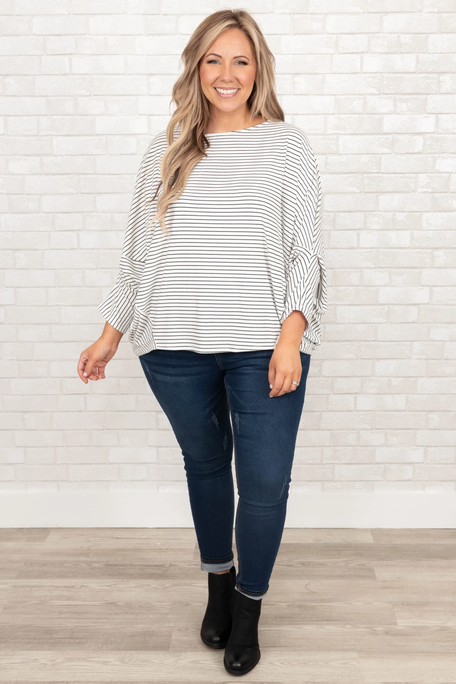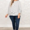 You’ll want to add this beauty to your wardrobe this season! This top has a neutral color with a stripe design that is a season favorite! The textured material and stretchy fit is super comfy! Style this top with skinnies or leggings for a classic chic look!